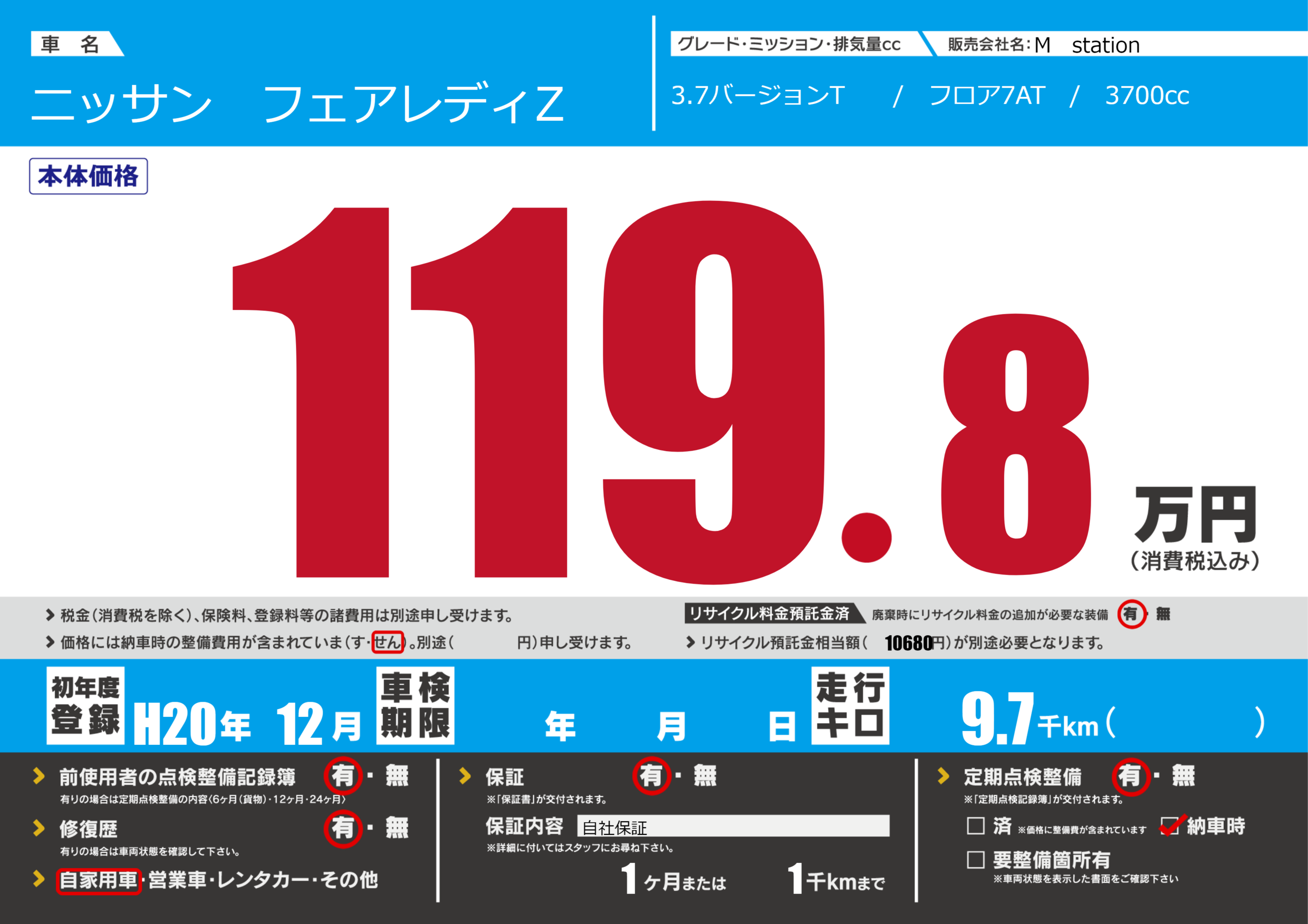 | 車名 | ニッサン フェアレディZ | グレード ミッション 排気量 |
