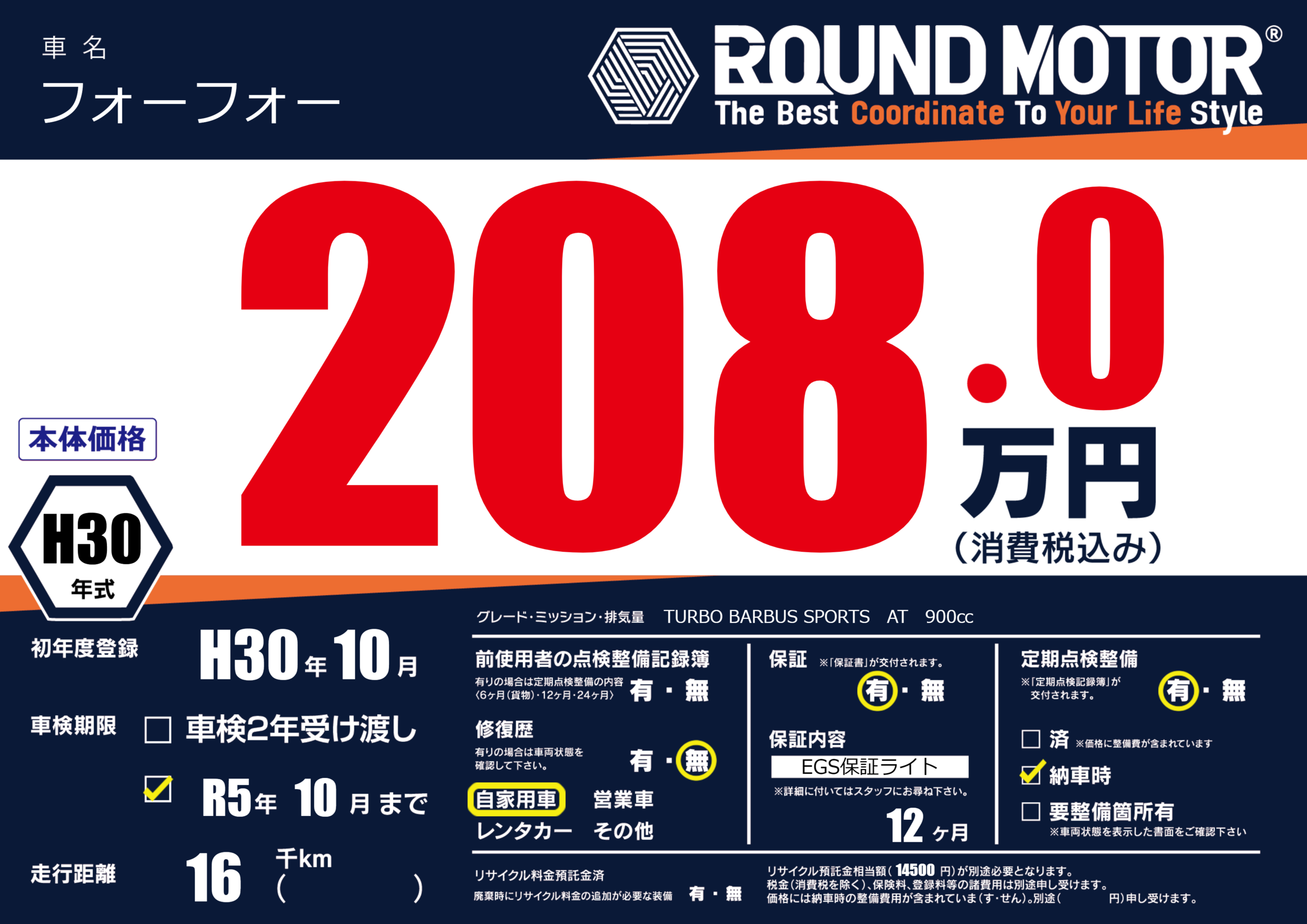 | 車検制限 | R5年 10月 - 日 | ||