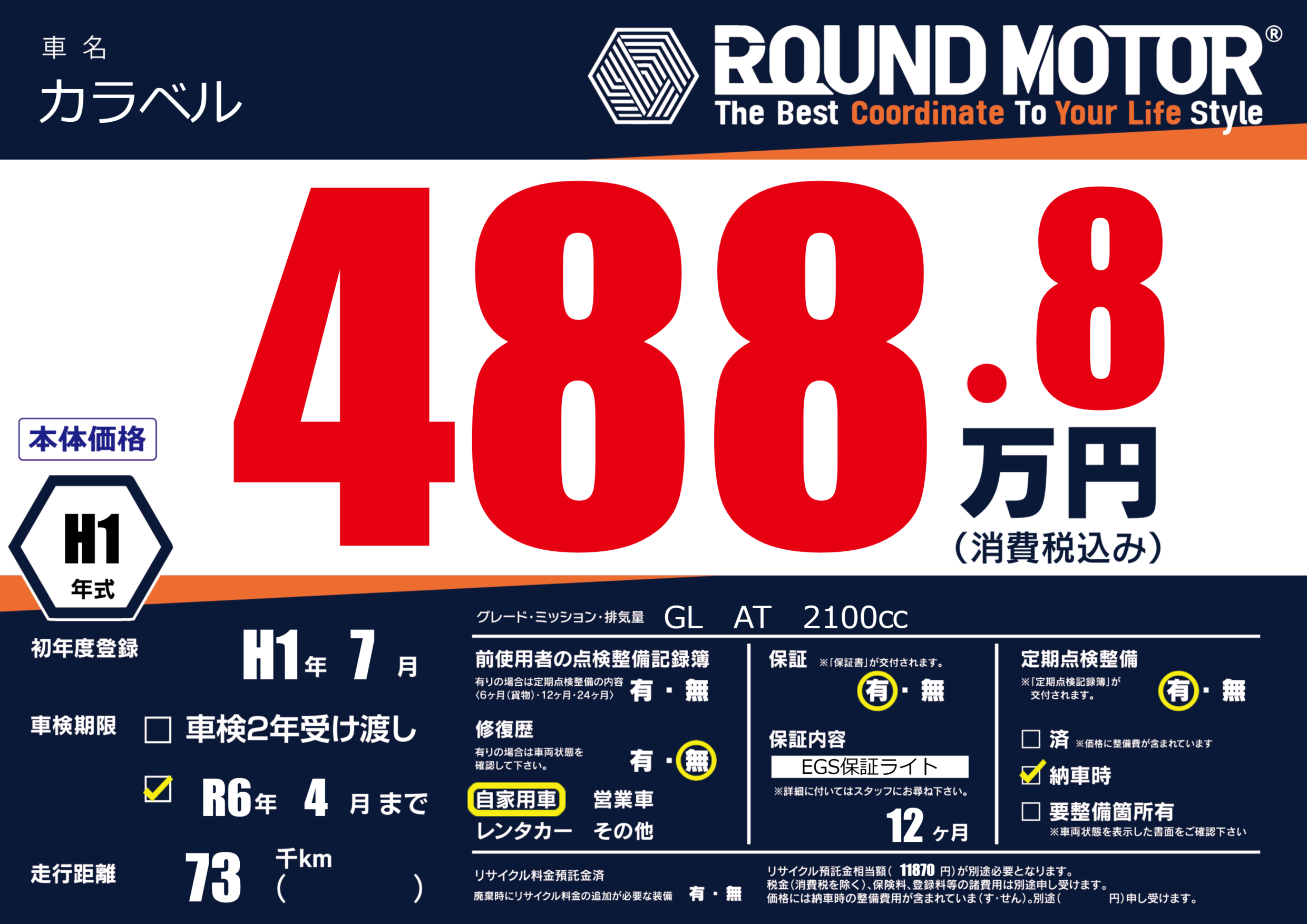 保証付き 保証内容(EGS保証ライト) 12ヶ月または()千kmまで |