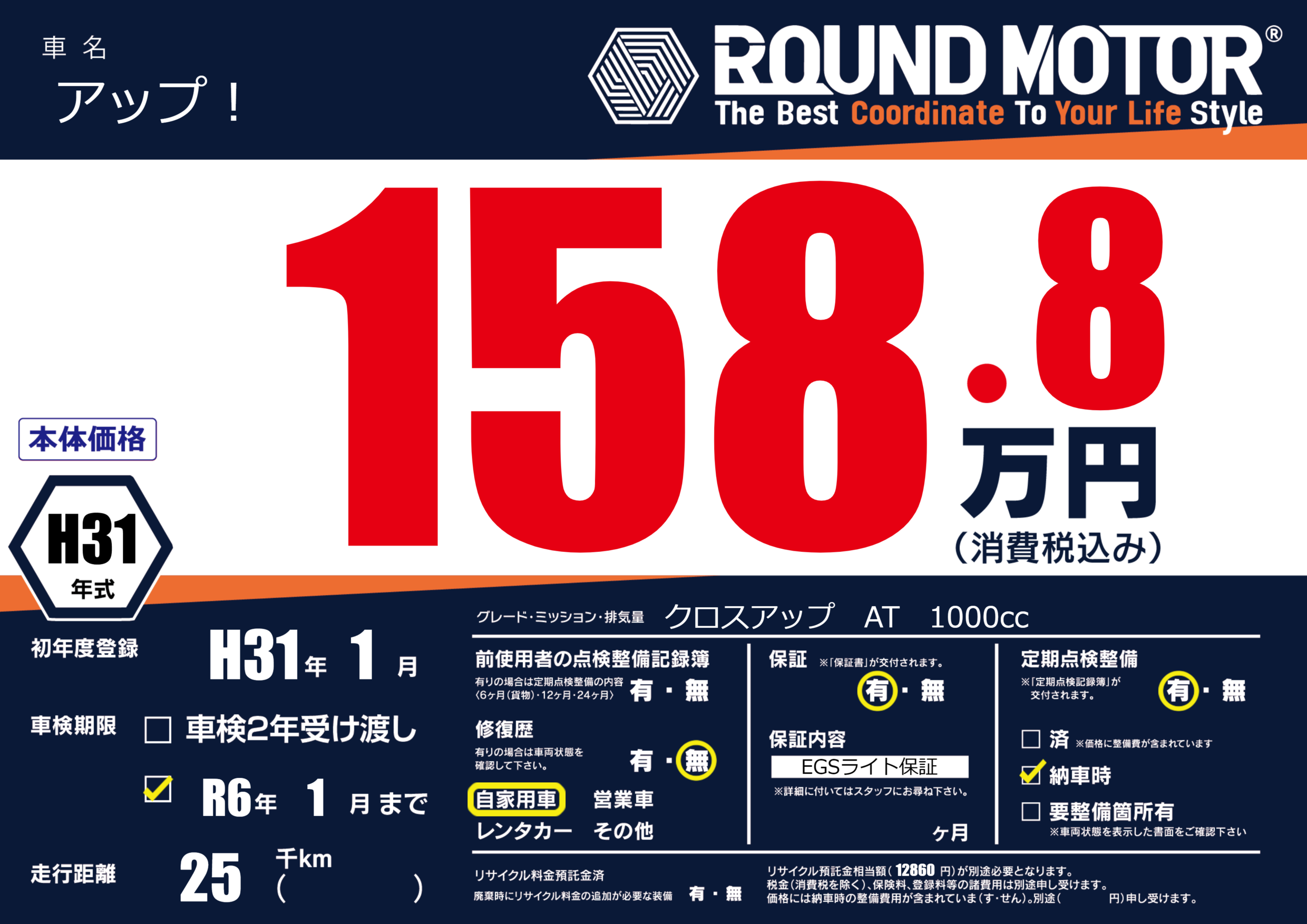 | 車名 | アップ! | グレード ミッション 排気量 |