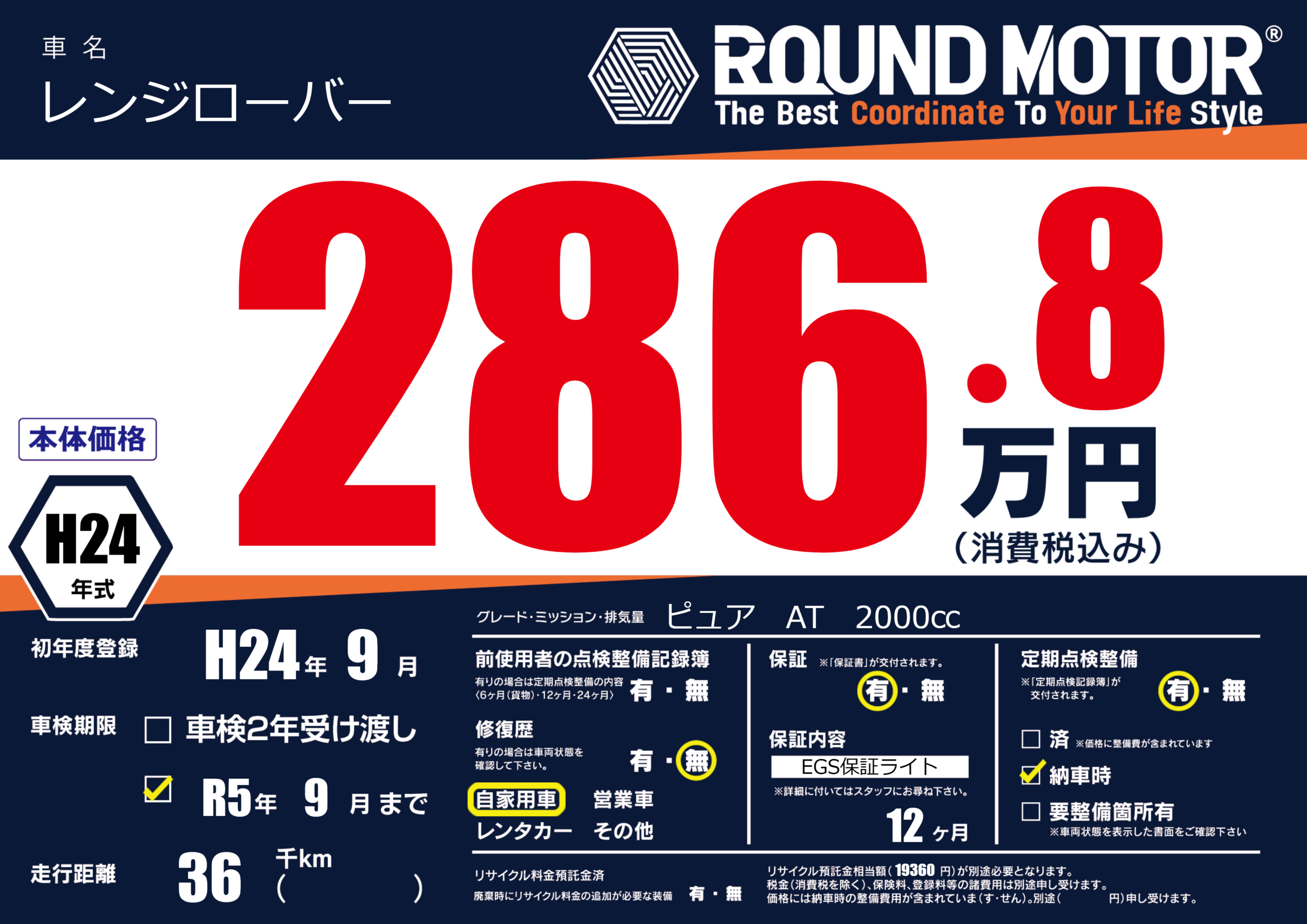 | 車名 | レンジローバー | グレード ミッション 排気量 |