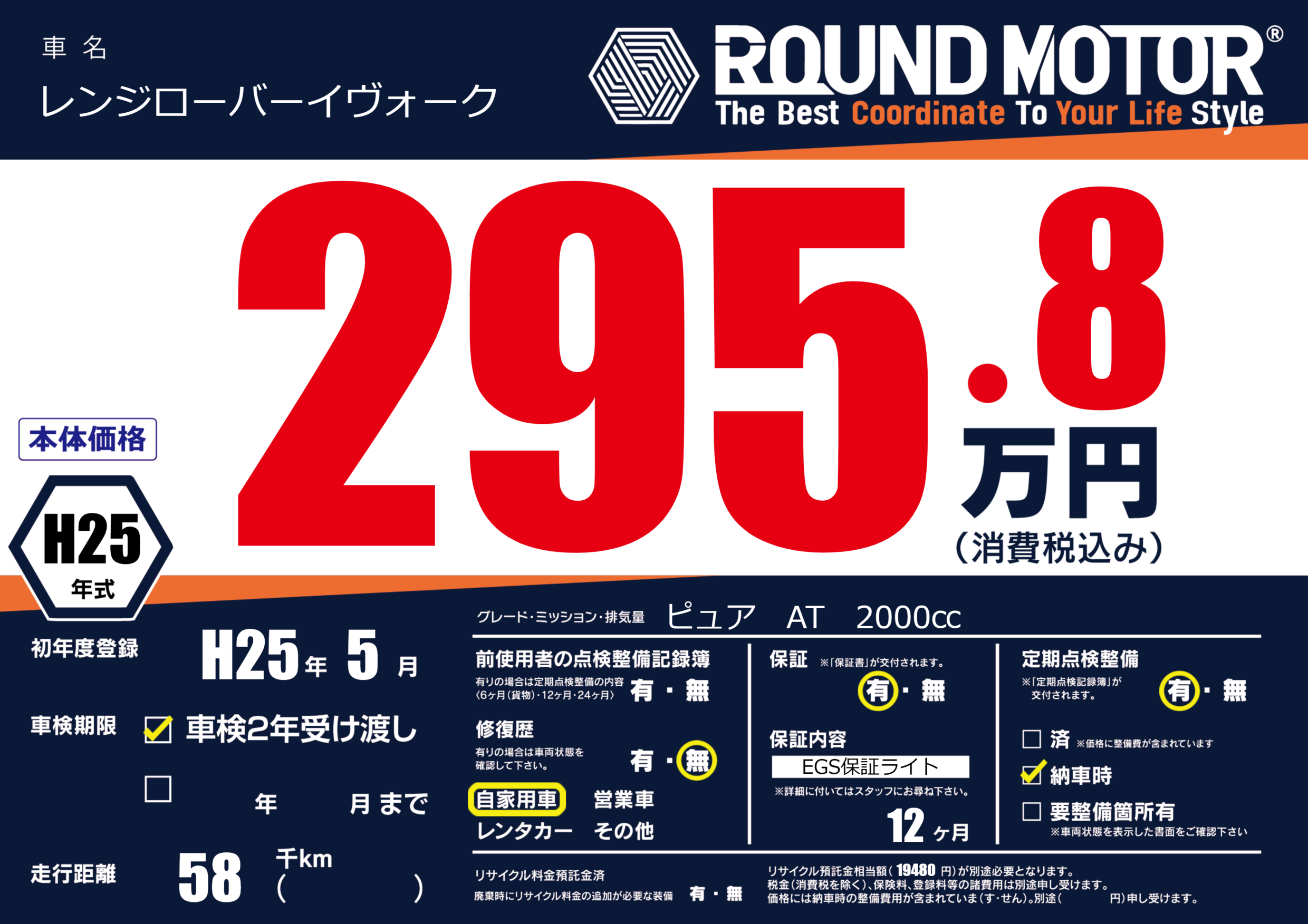保証付き 保証内容(EGS保証ライト) 12ヶ月または()千kmまで |