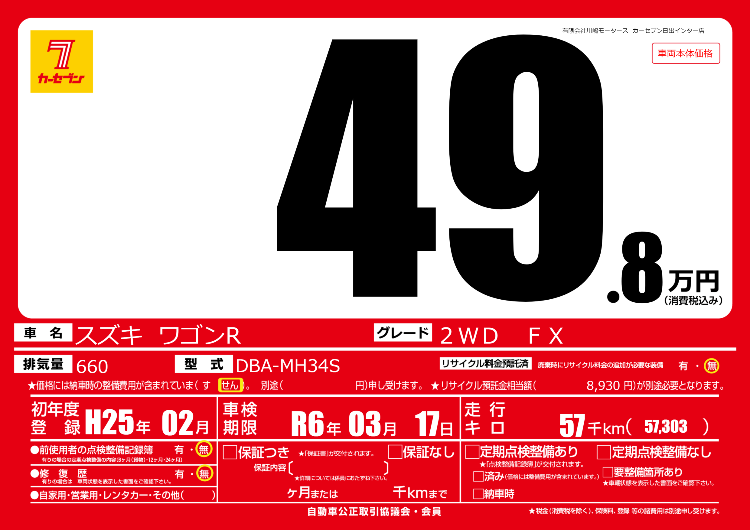 | 車検制限 | R6年 03月 17日 | ||