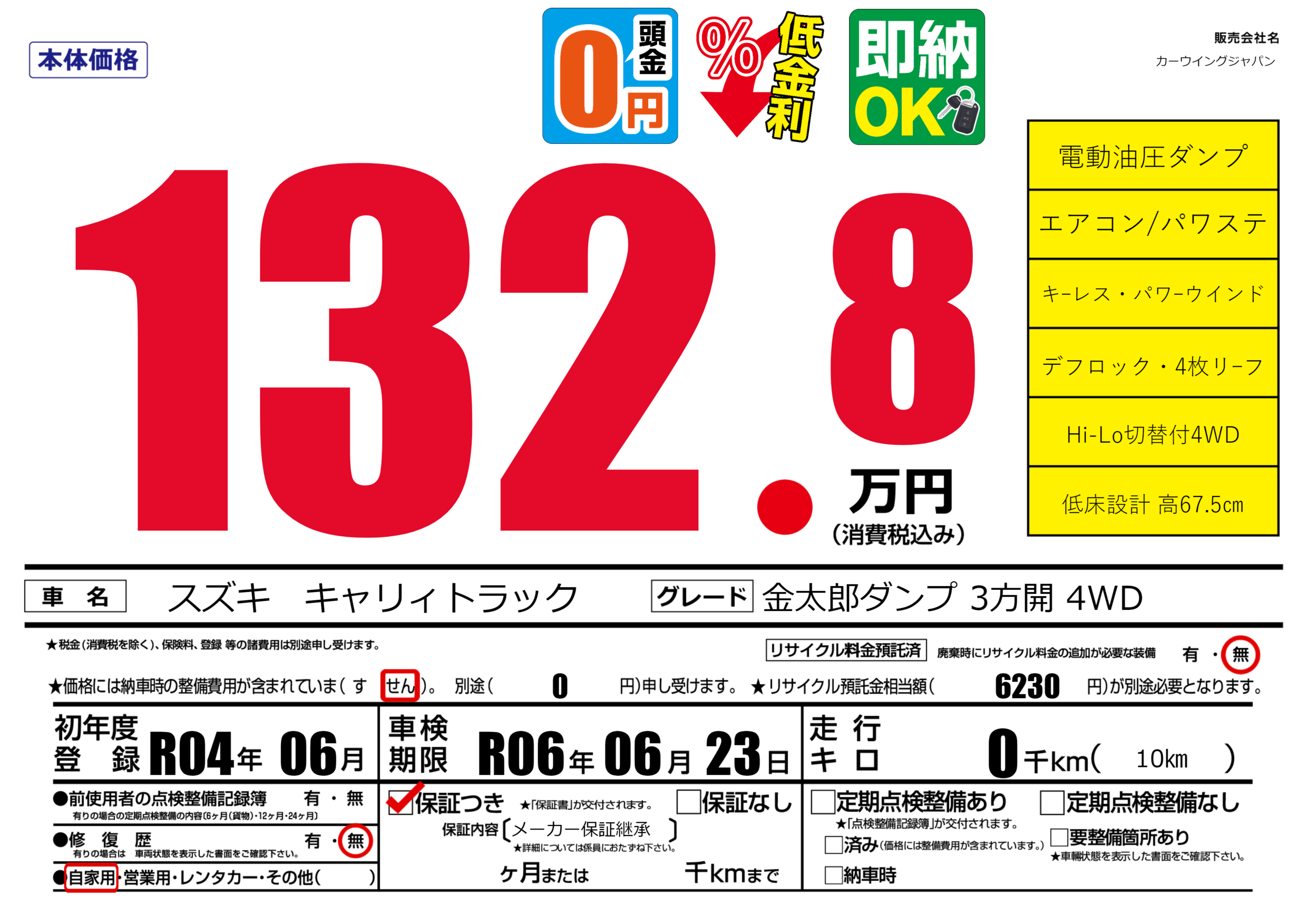 | 走行キロ | - | 初年度登録 | R04年06月 |
