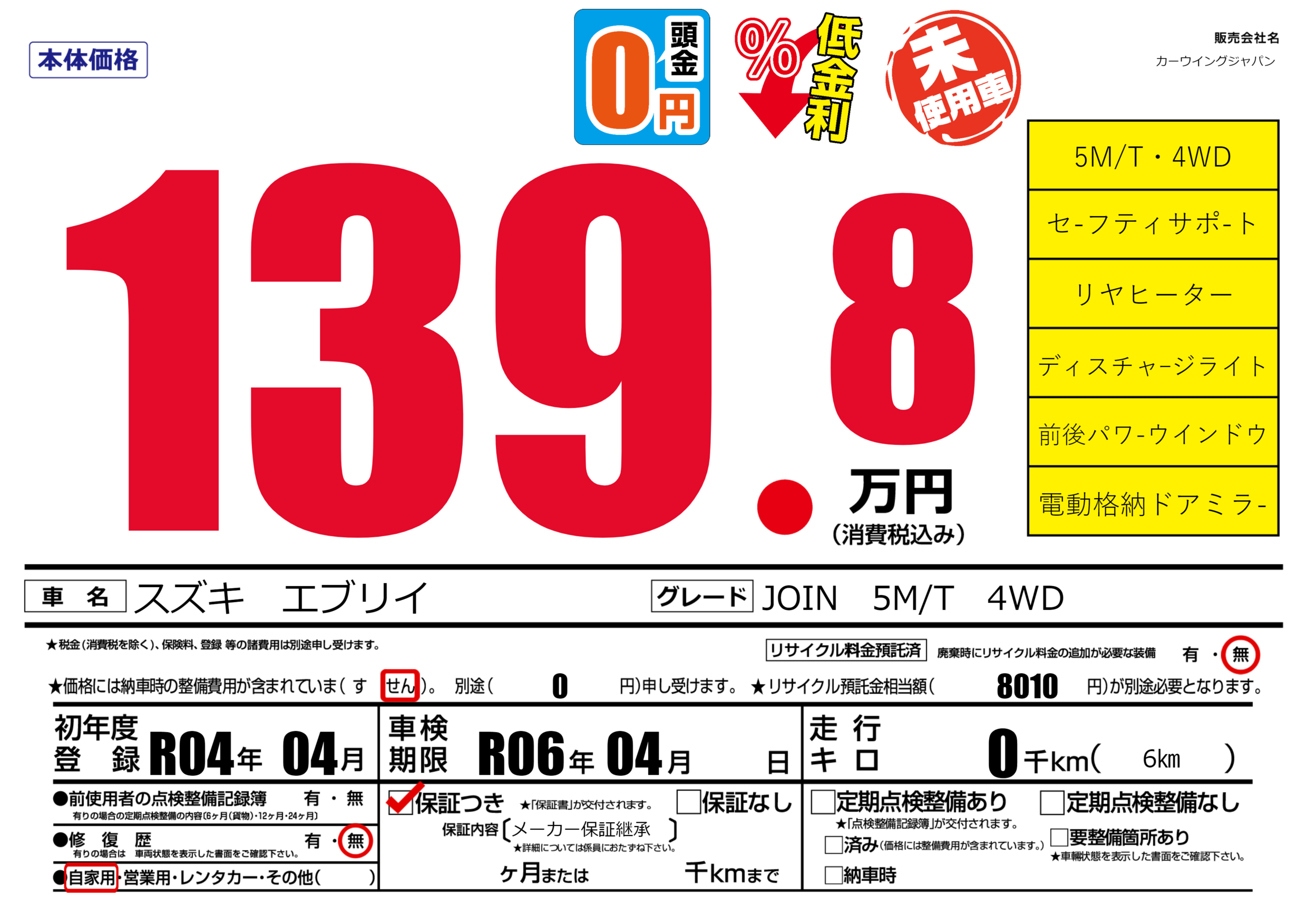 保証付き 保証内容(メーカー保証継承) ---ヶ月または()千kmまで |