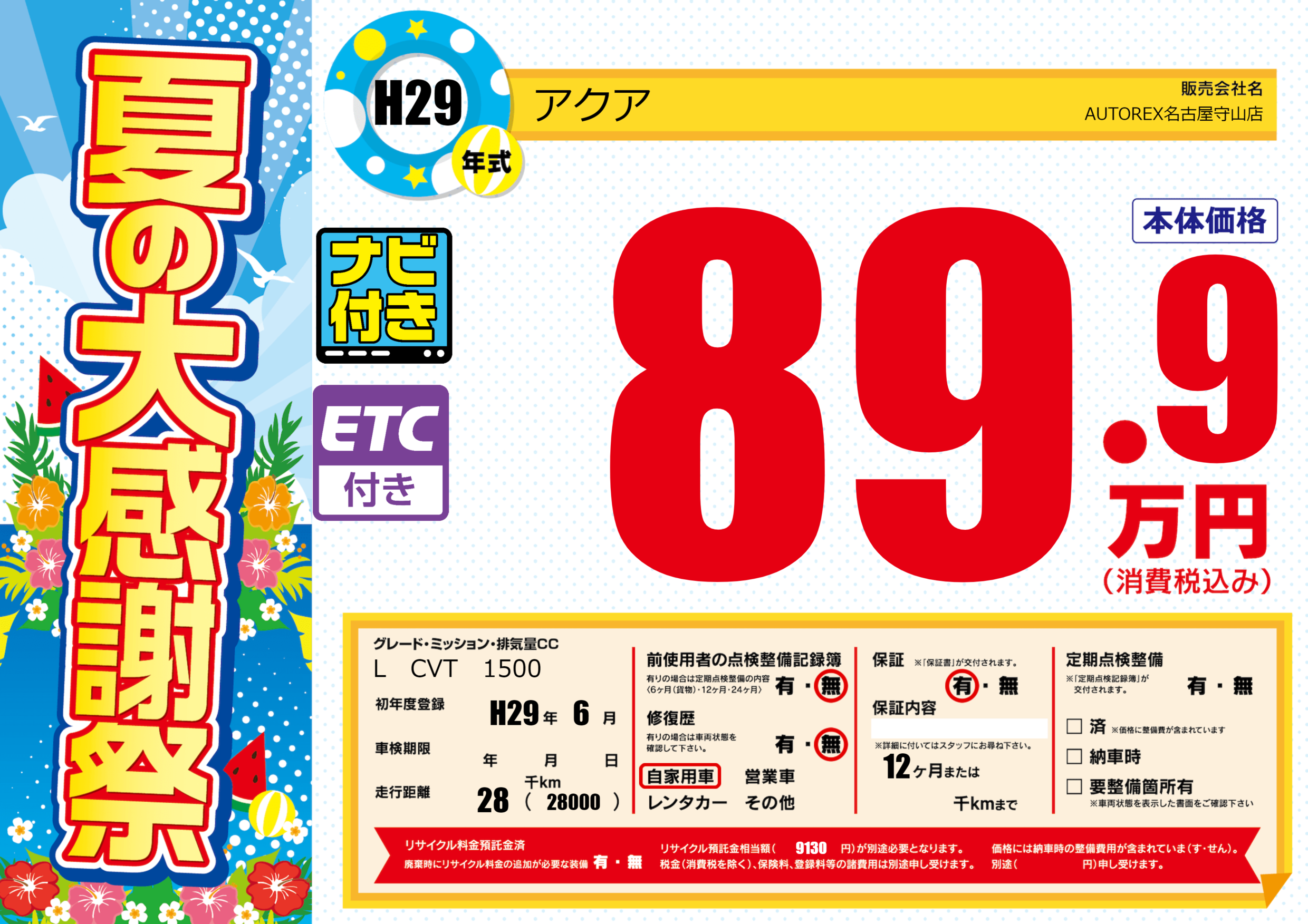 | 走行キロ | 2.8万km | 初年度登録 | H29年6月 |