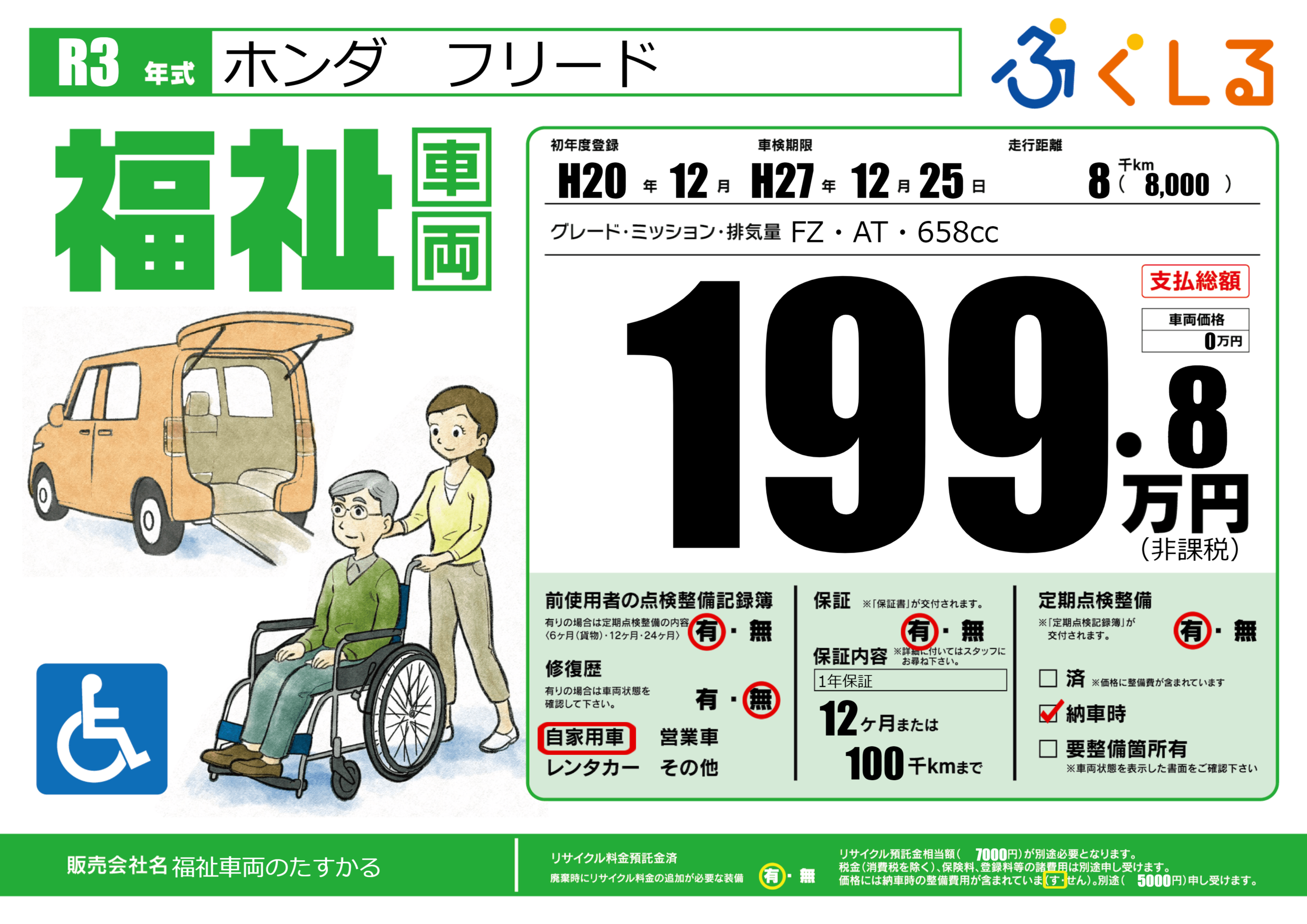 保証付き 保証内容(1年保証) 12ヶ月または(100)千kmまで |