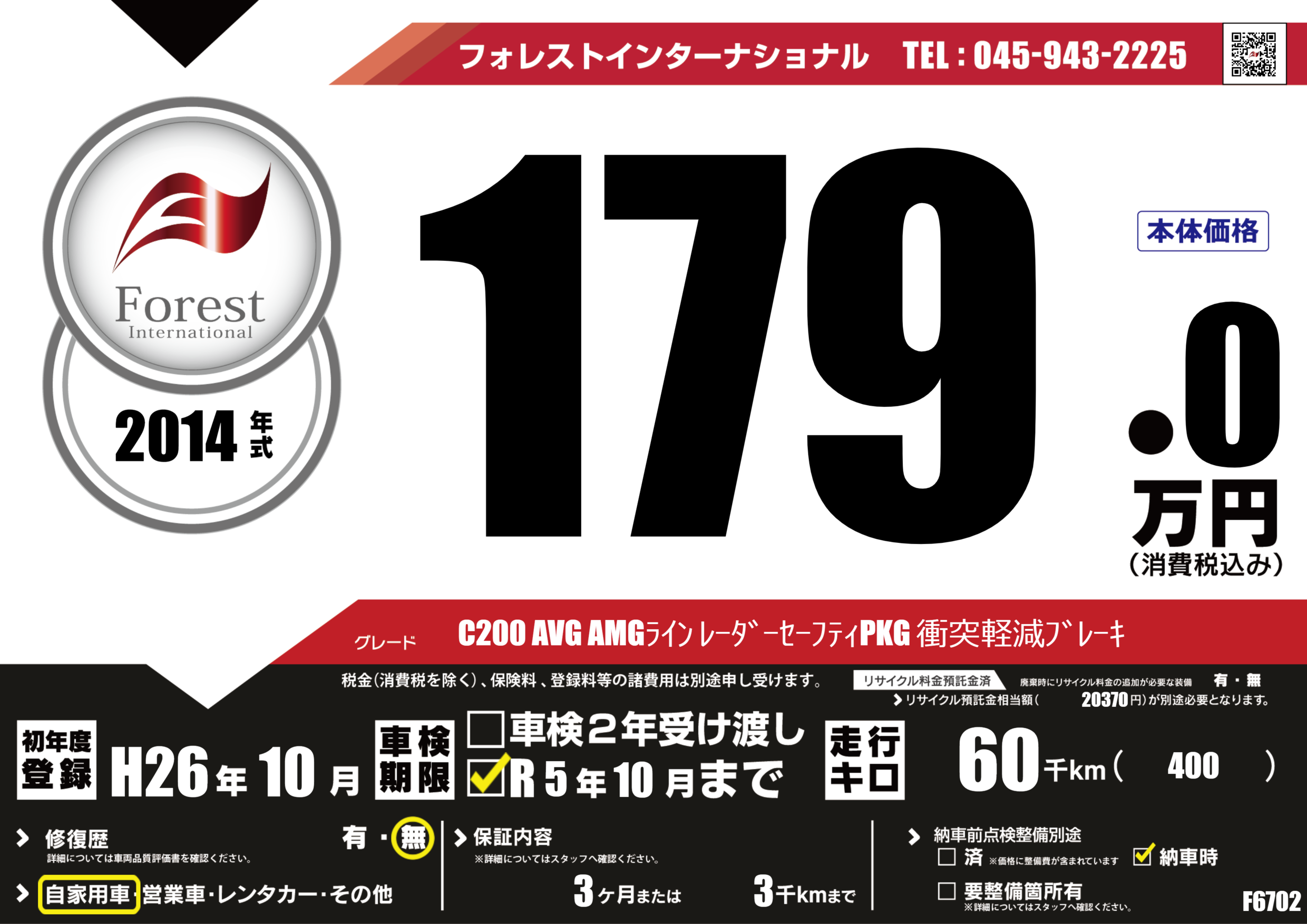 C200 AVG AMGライン レーダーセーフティPKG 衝突軽減ブレーキ |