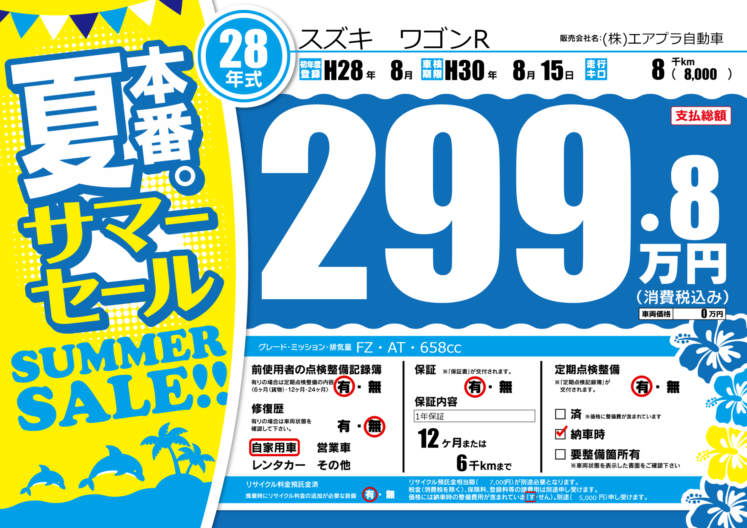 | 車検制限 | H30年 8月 15日 | ||