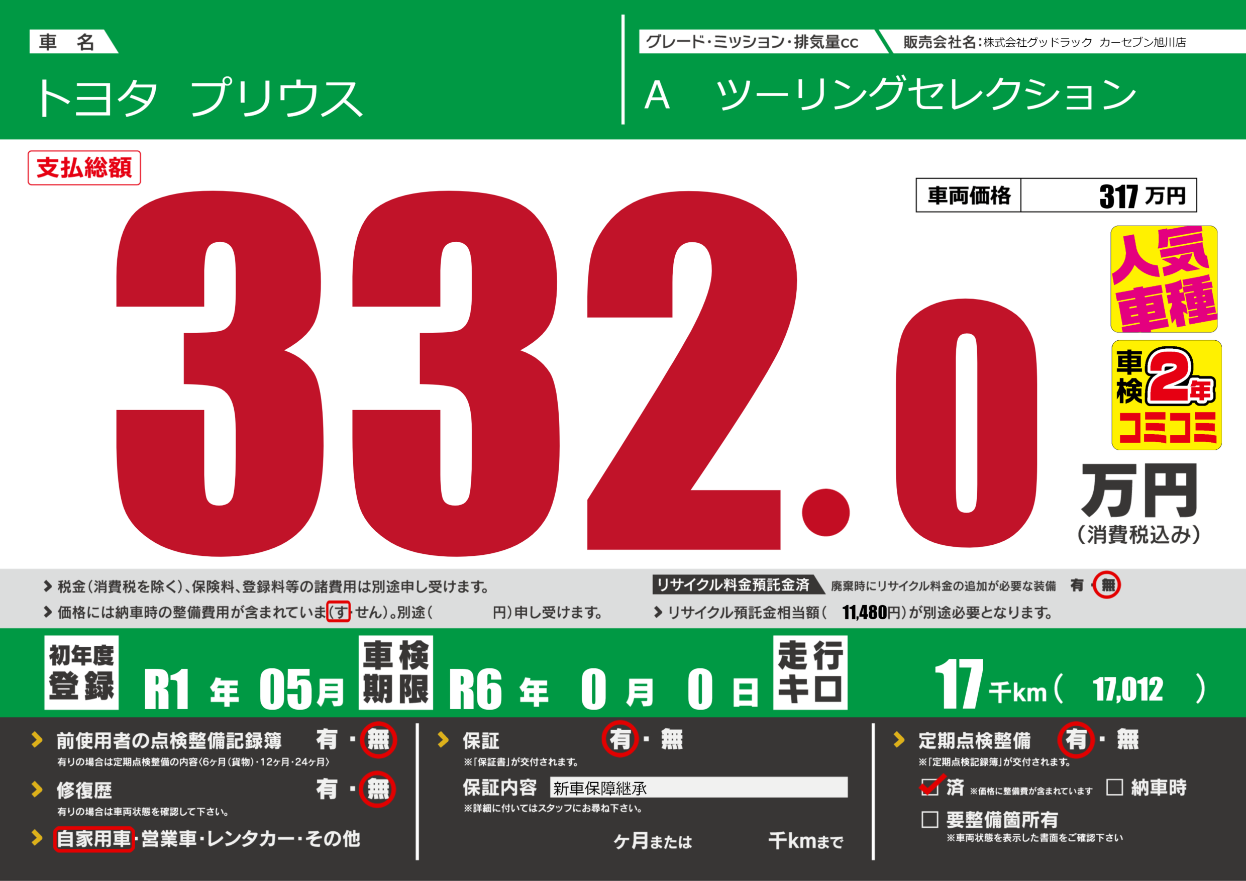 | 定期点検整備 | 定期点検整備あり 定期点検整備済み | ||