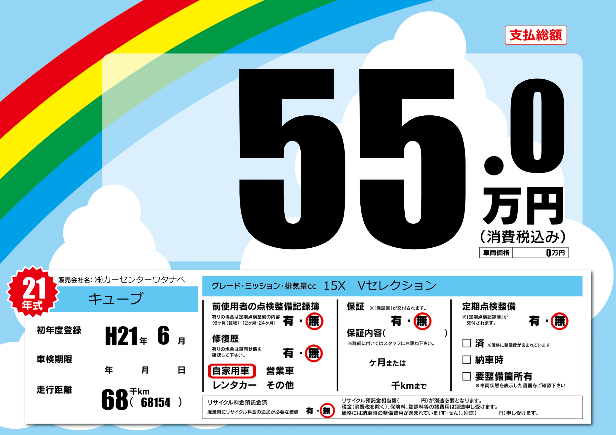 | 車名 | キューブ | グレード ミッション 排気量 |