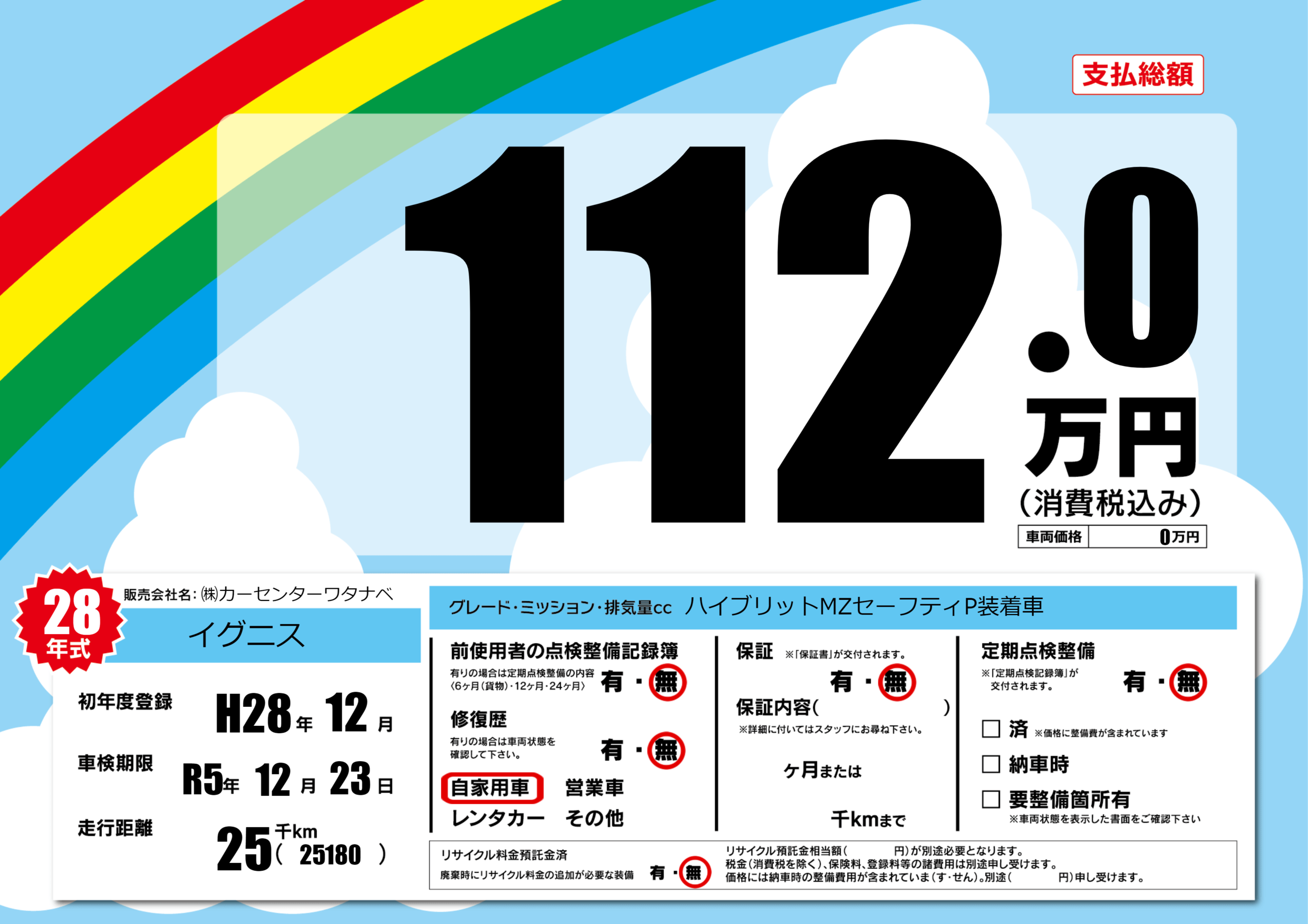 なし | 車検制限 | R5年12月23月 |
