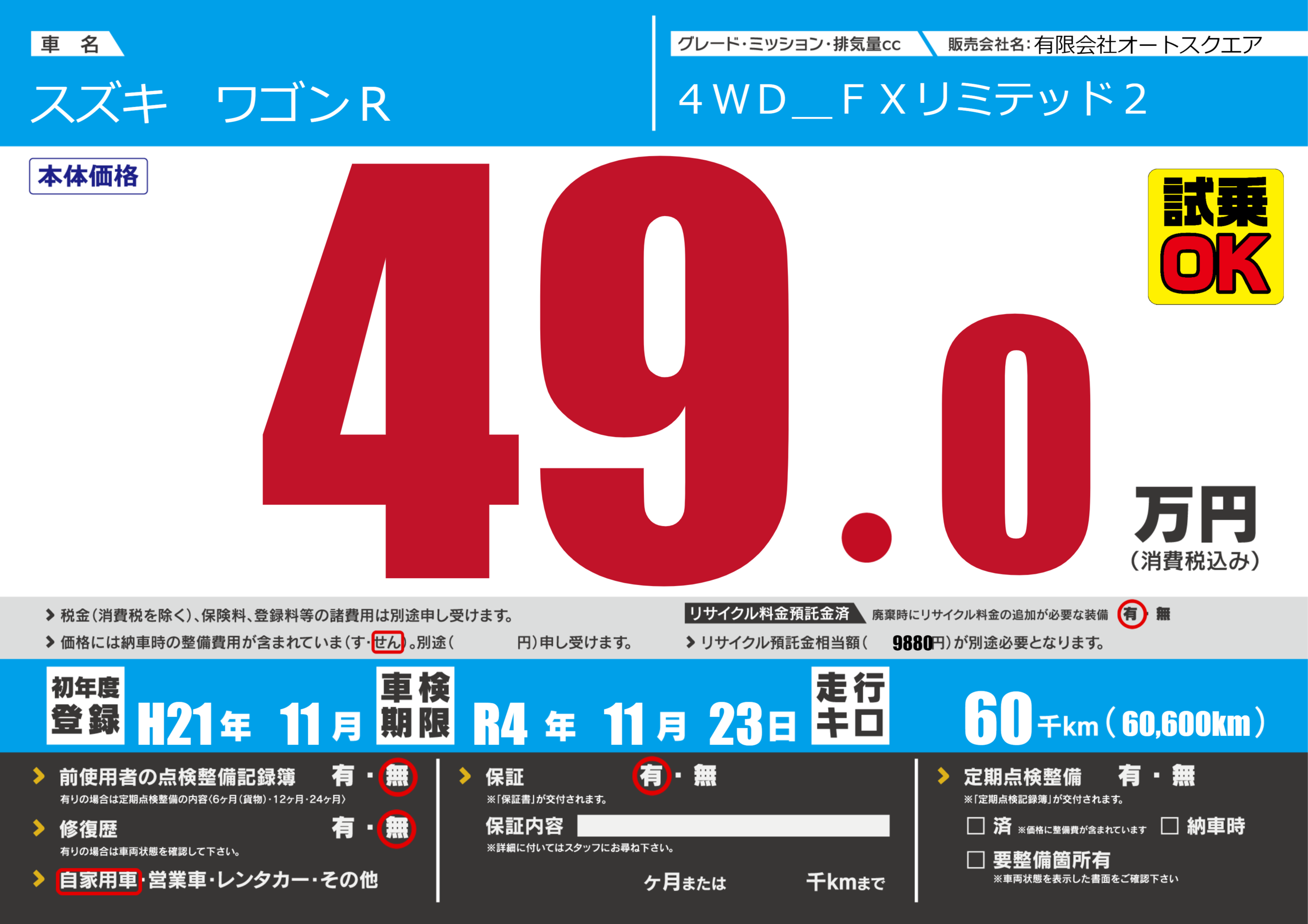 なし | 車検制限 | R4年11月23月 |