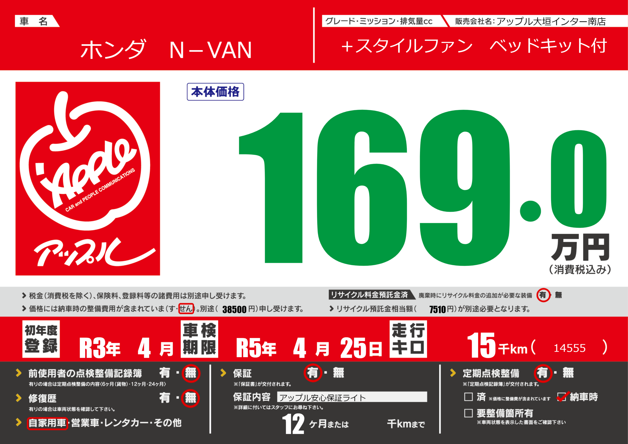 | 車名 | ホンダ N-VAN | グレード ミッション 排気量 |
