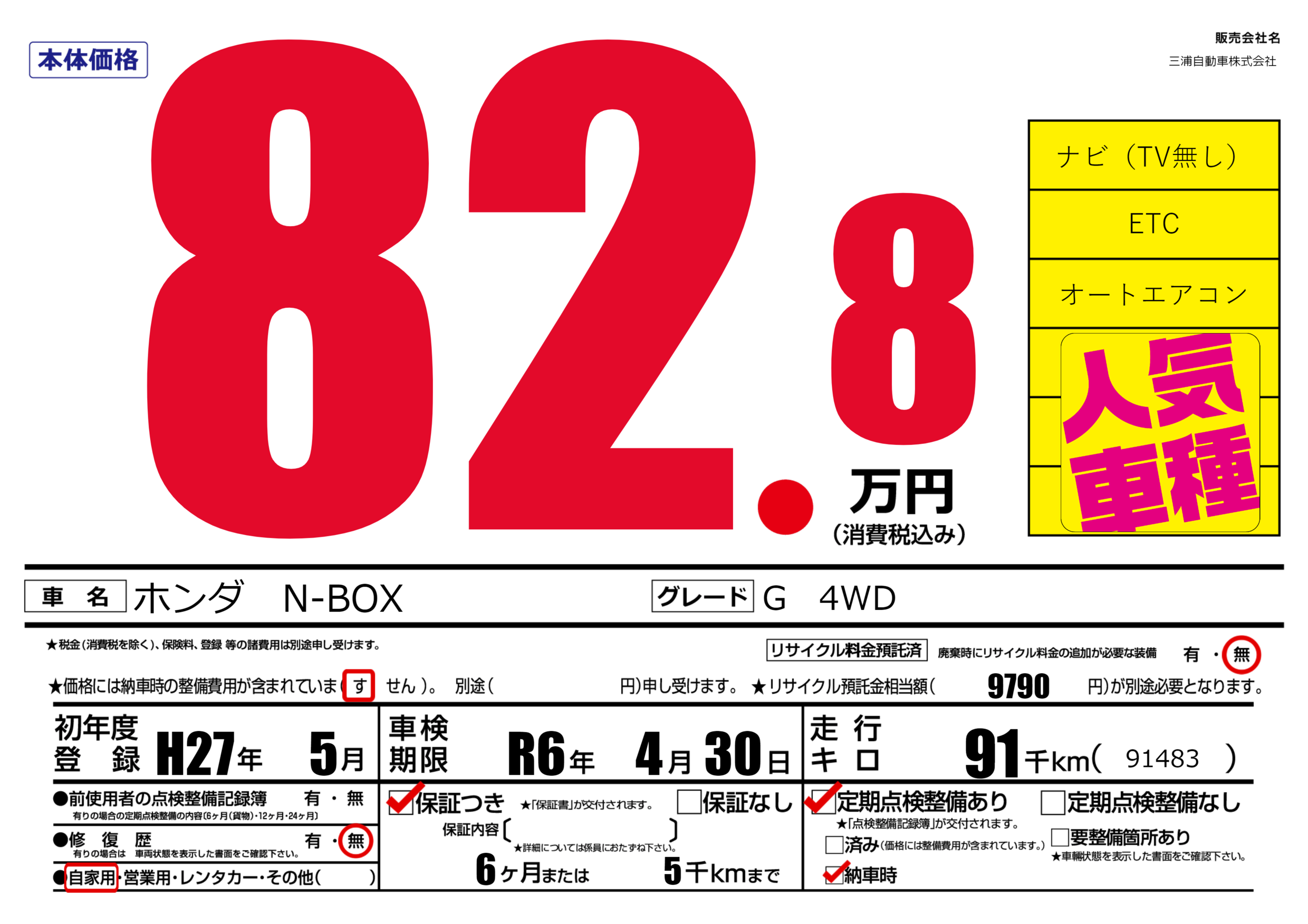保証付き 保証内容(---) 6ヶ月または(5)千kmまで |