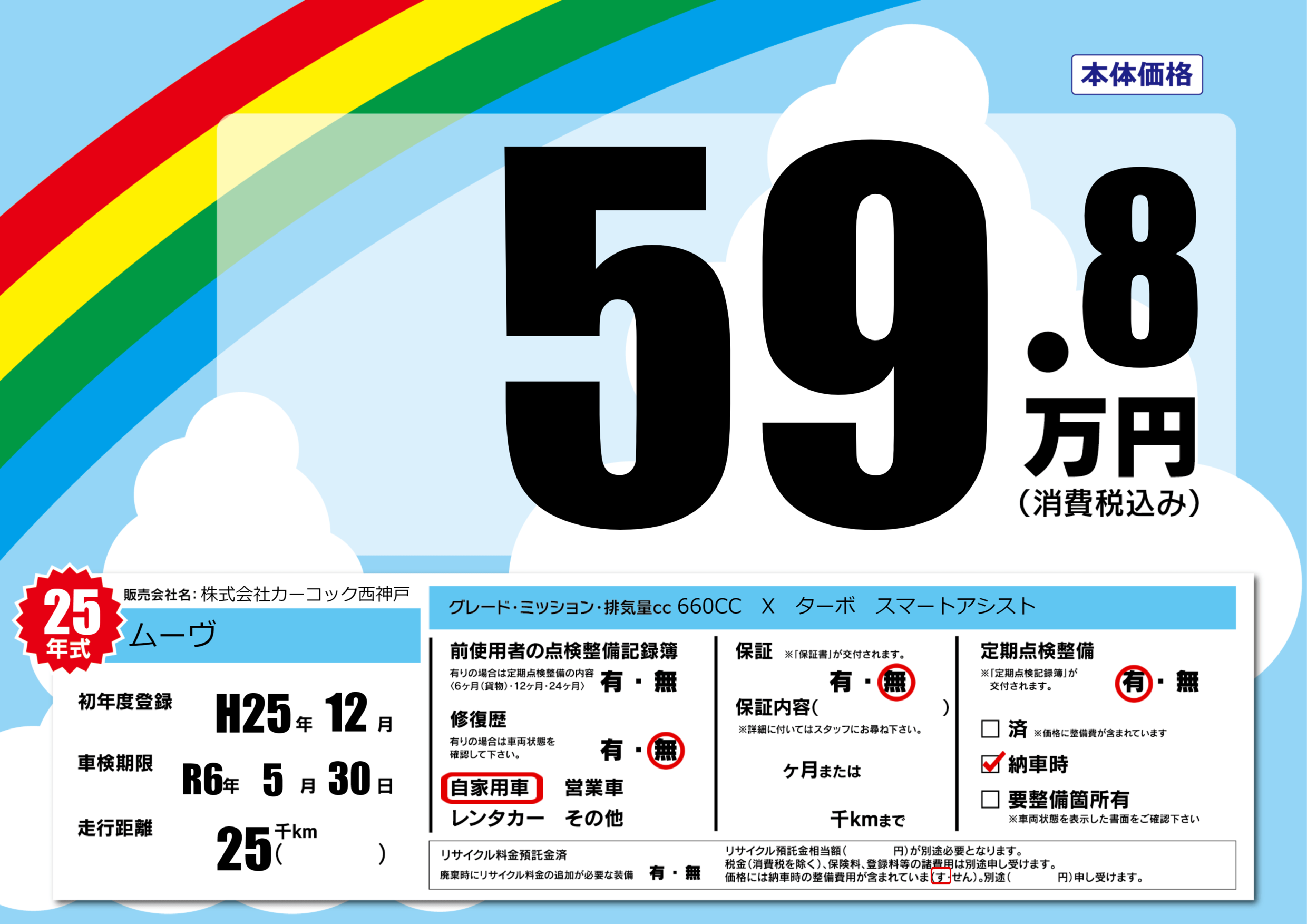 | 車名 | ムーヴ | グレード ミッション 排気量 |