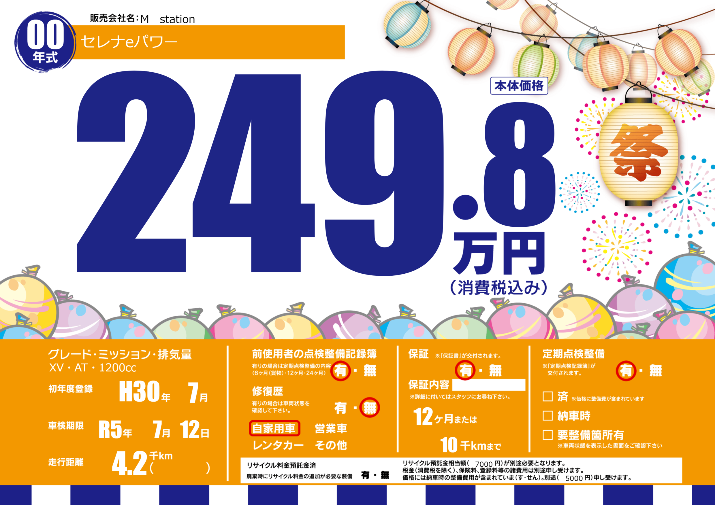 保証付き 保証内容(---) 12ヶ月または(10)千kmまで |