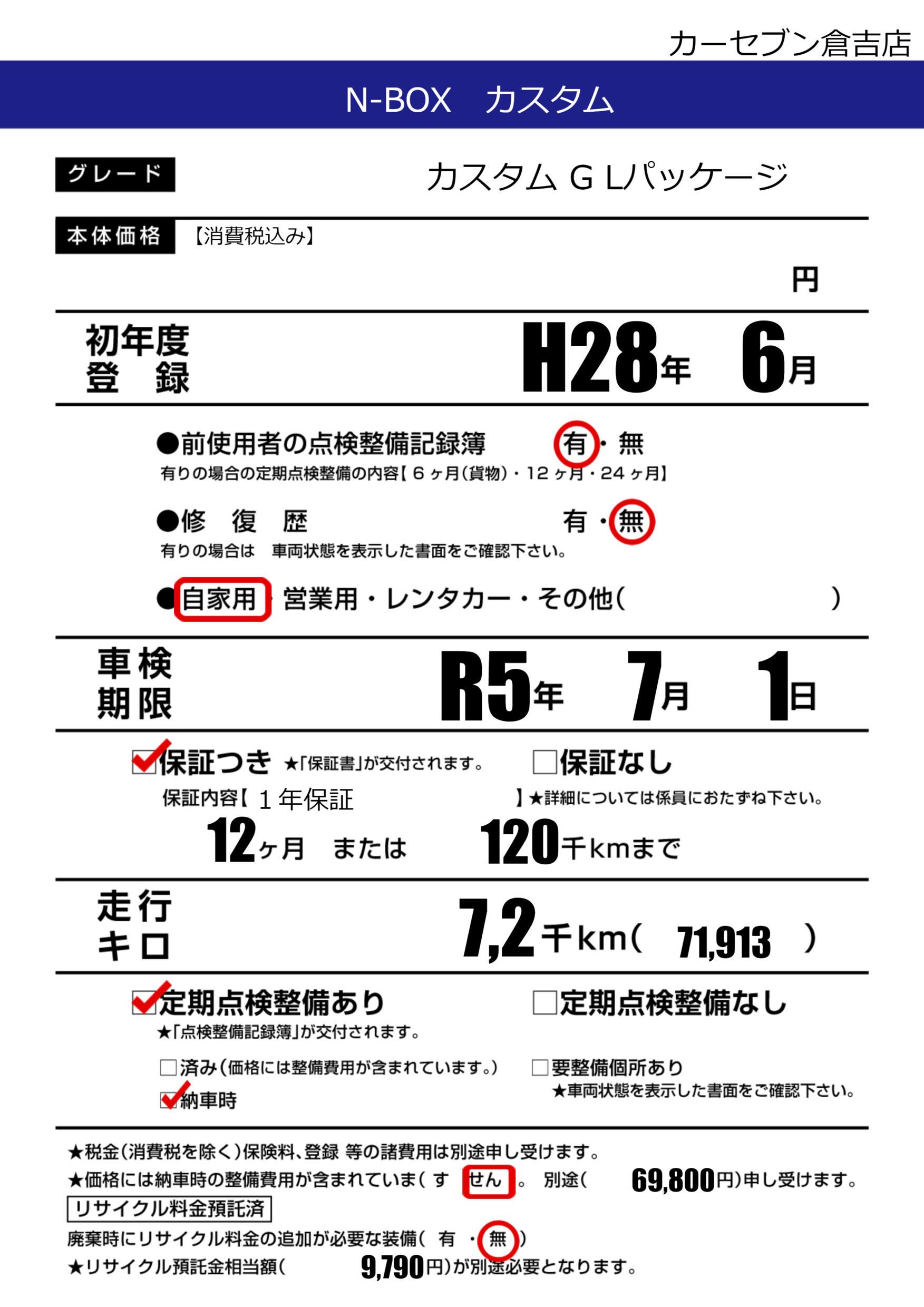 | 車名 | N-BOX カスタム | グレード ミッション 排気量 |