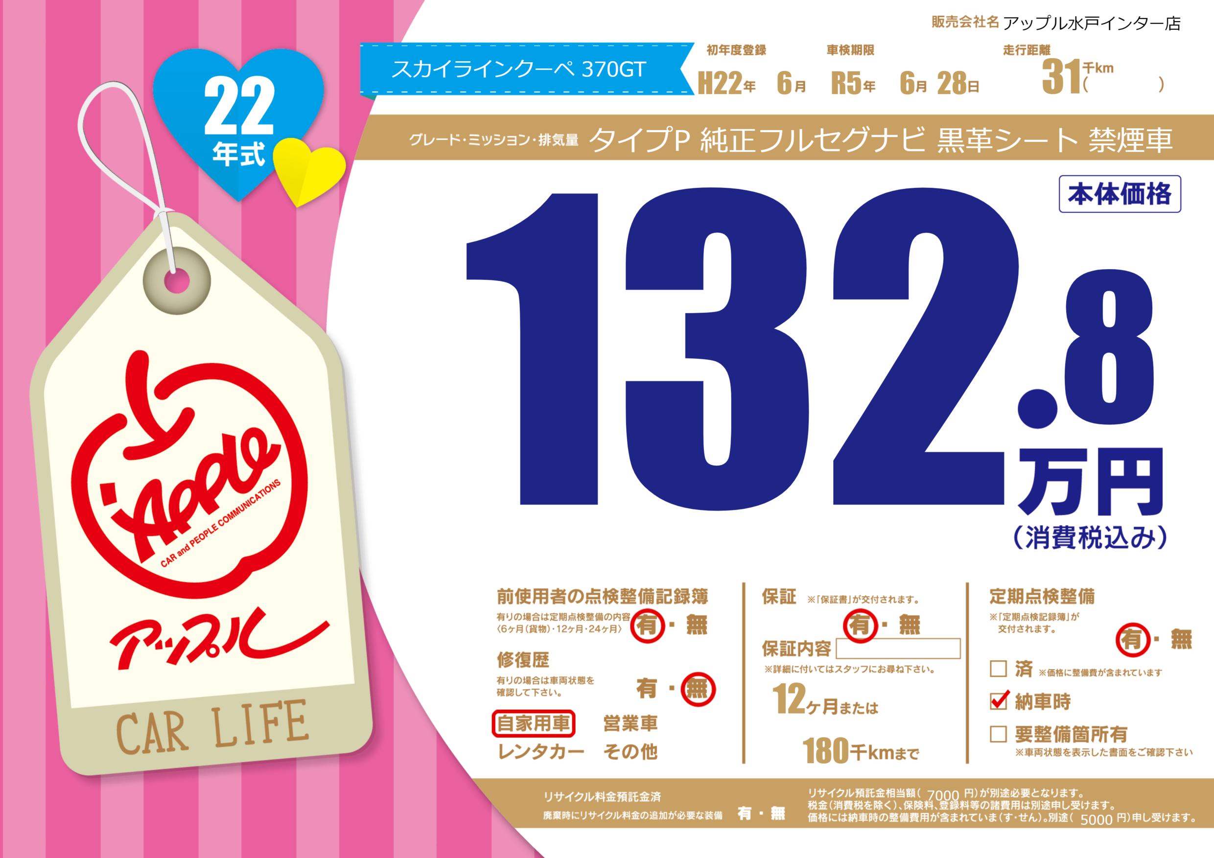 | 車名 | スカイラインクーペ 370GT | グレード ミッション 排気量 |