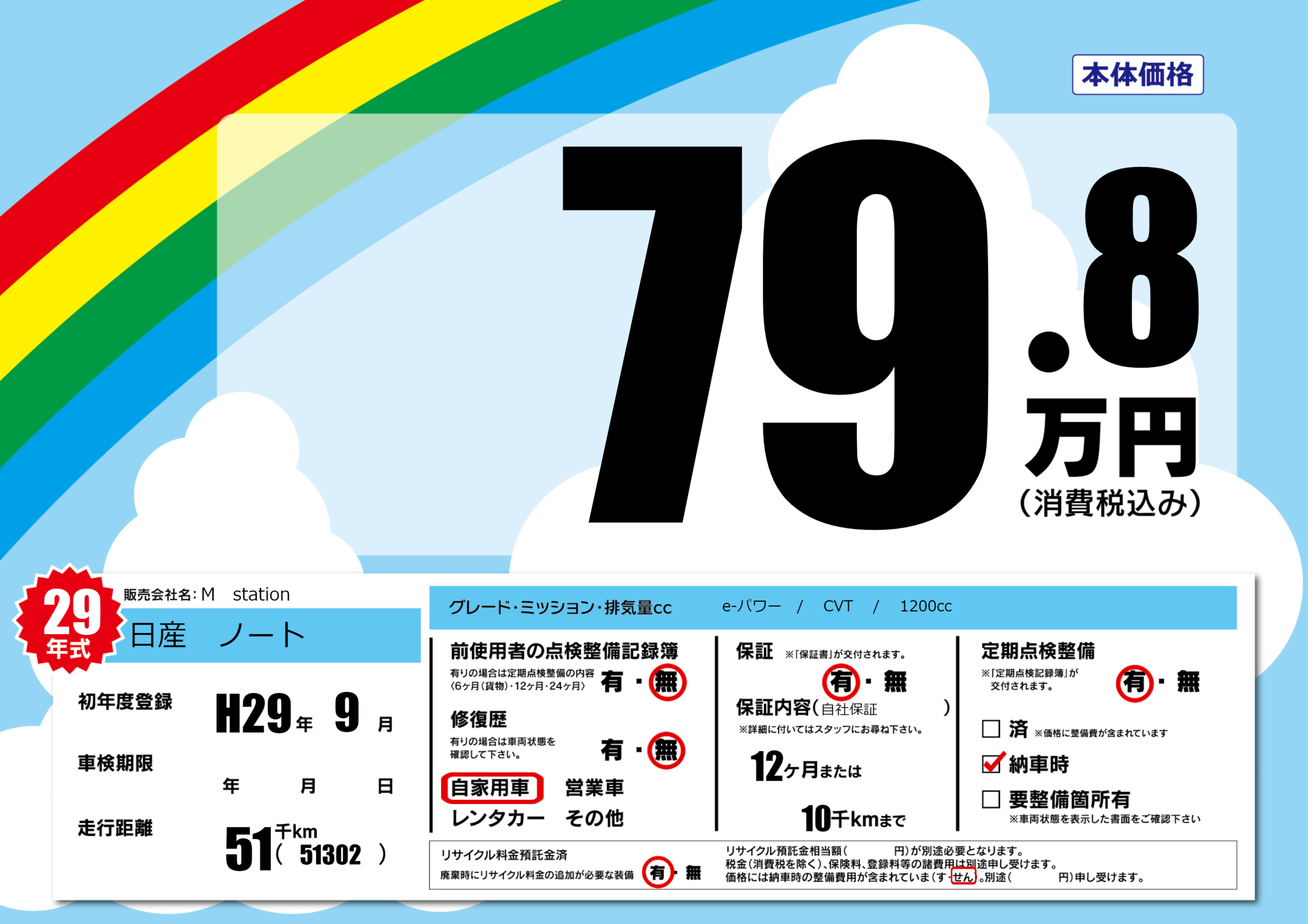 | 定期点検整備 | 定期点検整備あり 納車時あり | ||