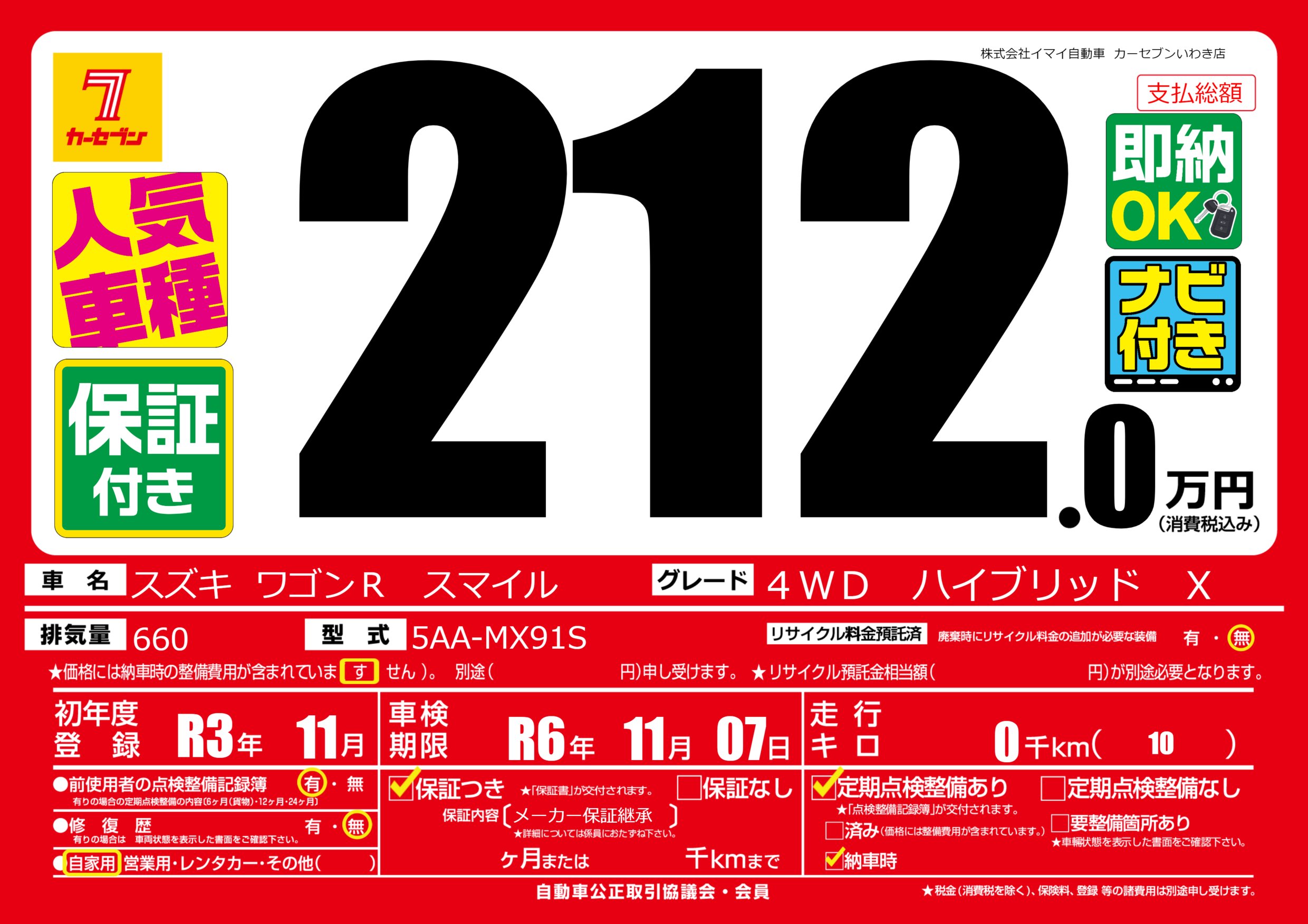 保証付き 保証内容(メーカー保証継承) ---ヶ月または()千kmまで |