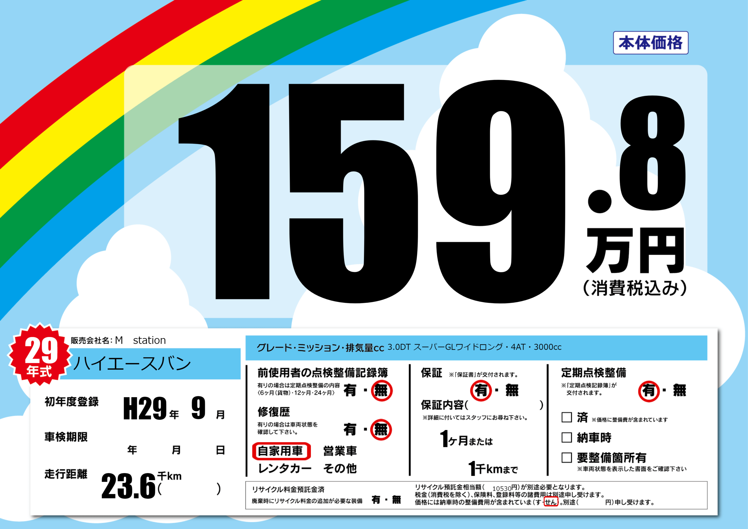 | 車名 | ハイエースバン | グレード ミッション 排気量 |