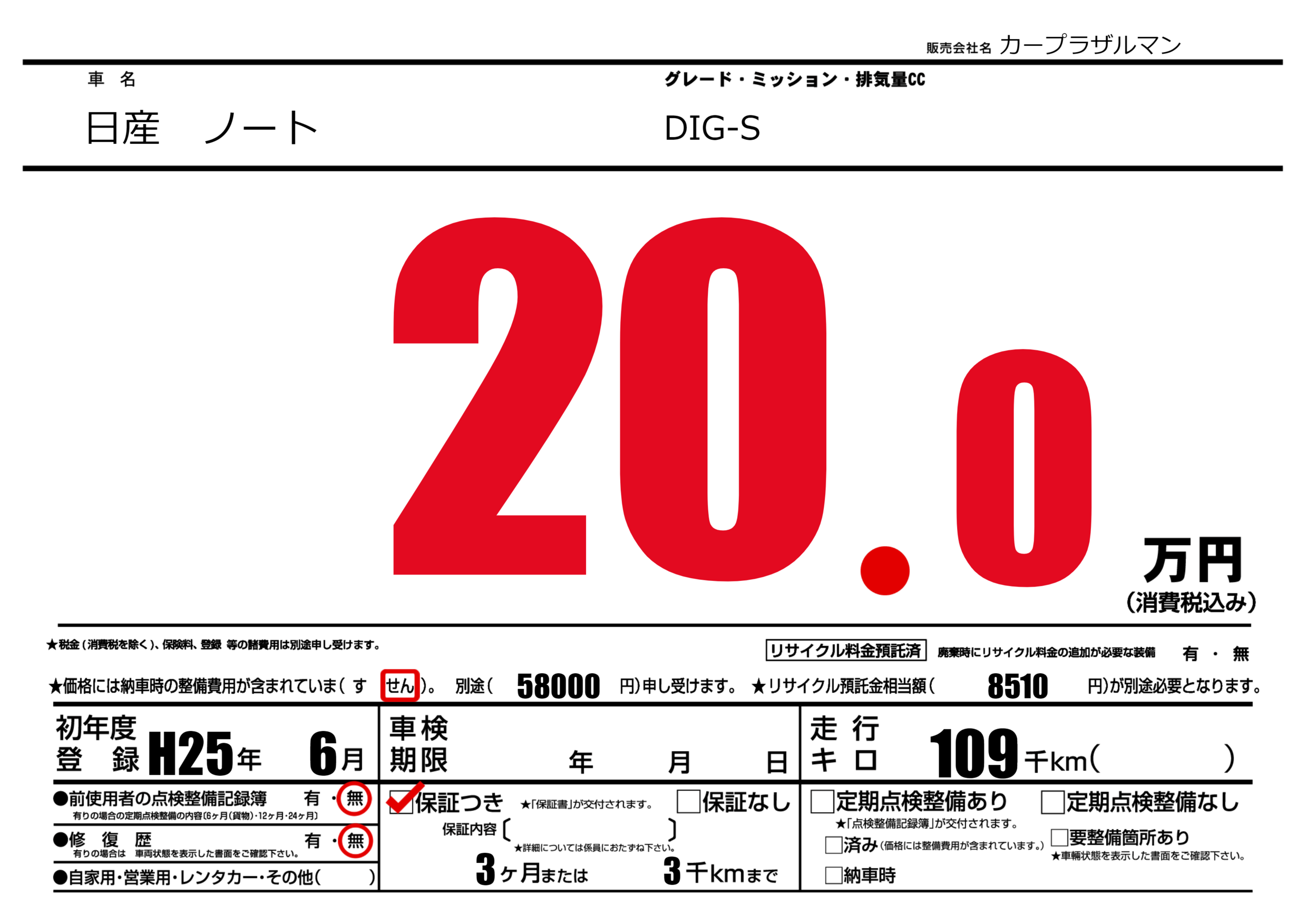 保証付き 保証内容(---) 3ヶ月または(3)千kmまで |