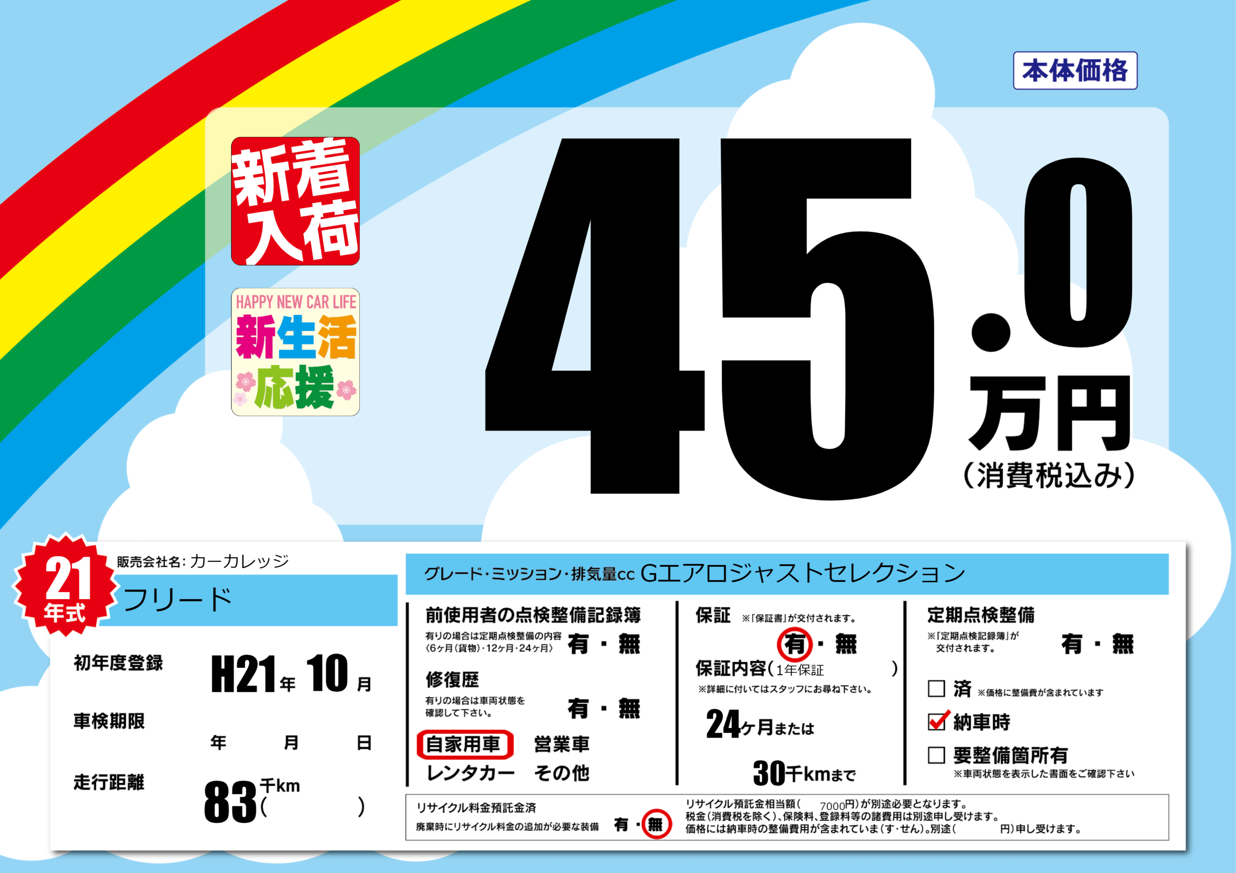 | 走行キロ | 8.3万km | 初年度登録 | H21年10月 |