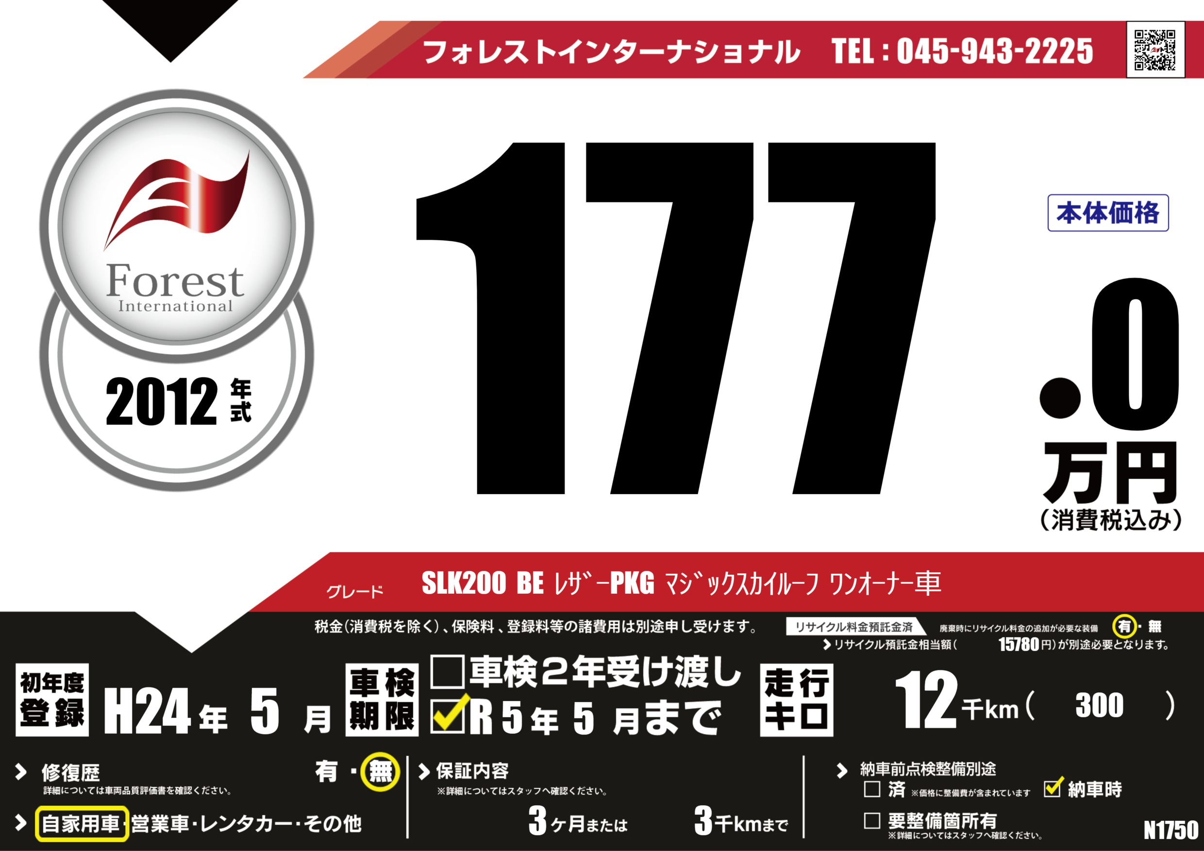 SLK200 BE レザーPKG マジックスカイルーフ ワンオーナー車 |