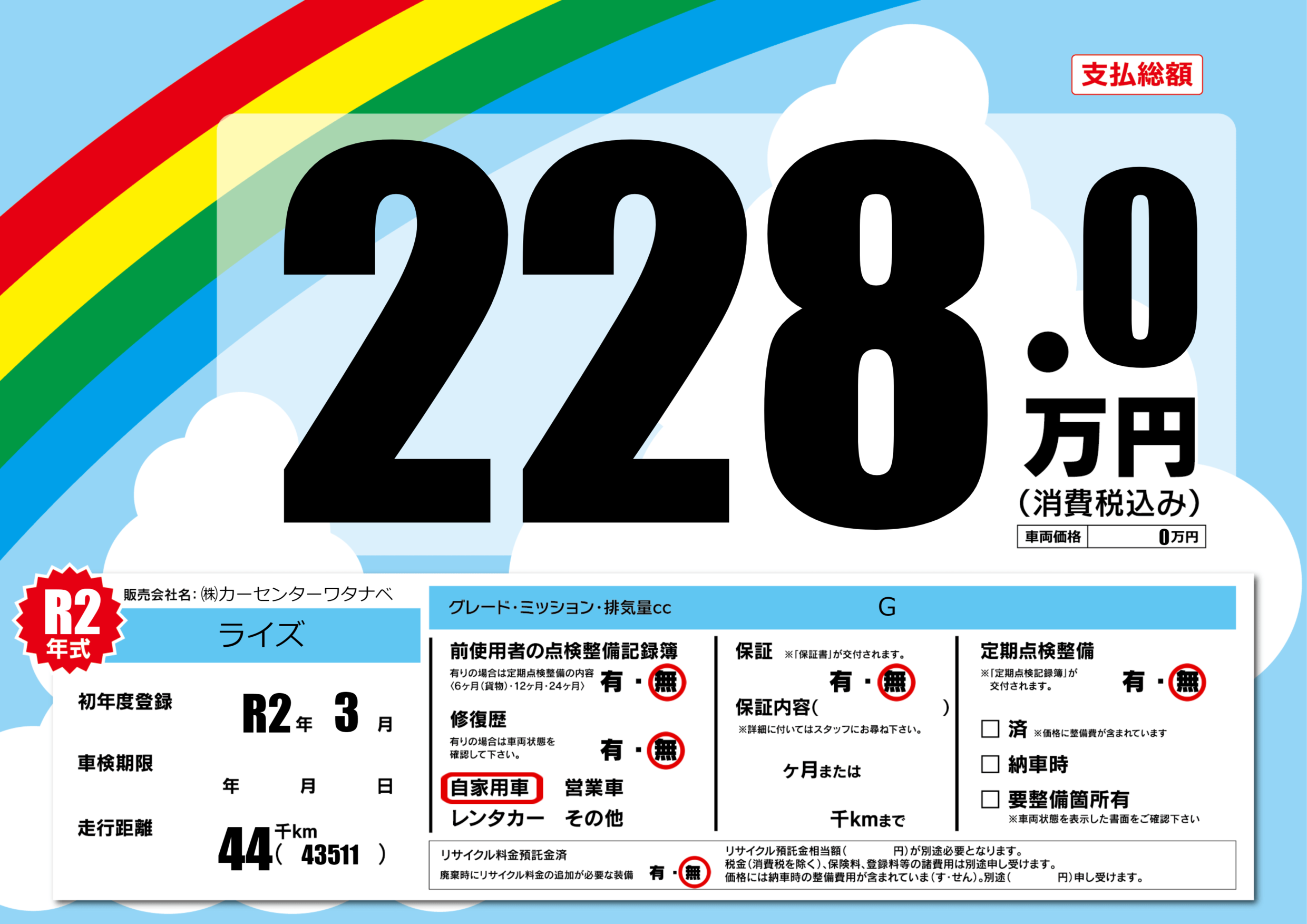 | 走行キロ | 4.4万km | 初年度登録 | R2年3月 |