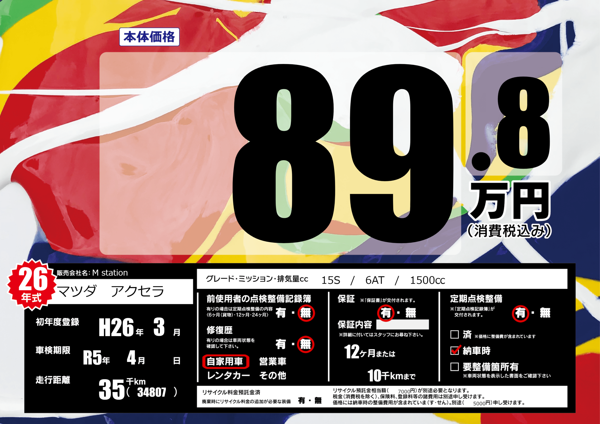 保証付き 保証内容(---) 12ヶ月または(10)千kmまで |
