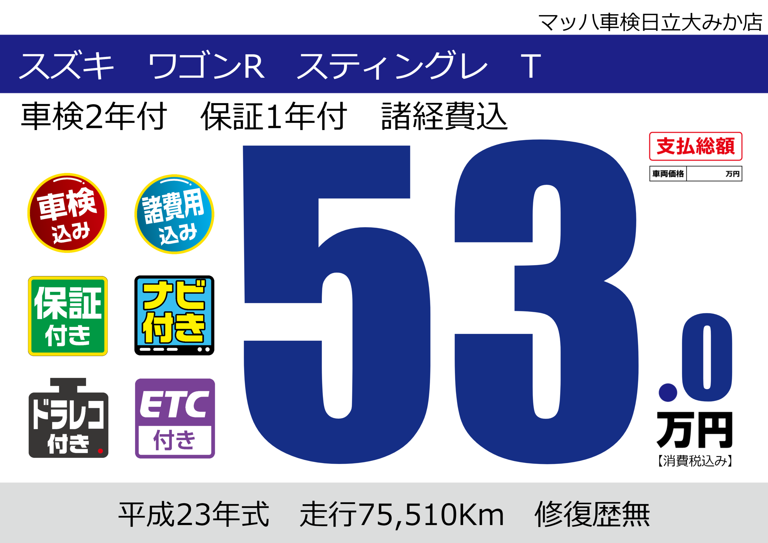 | 車名 | スズキ ワゴンR スティングレ T | グレード ミッション 排気量 |