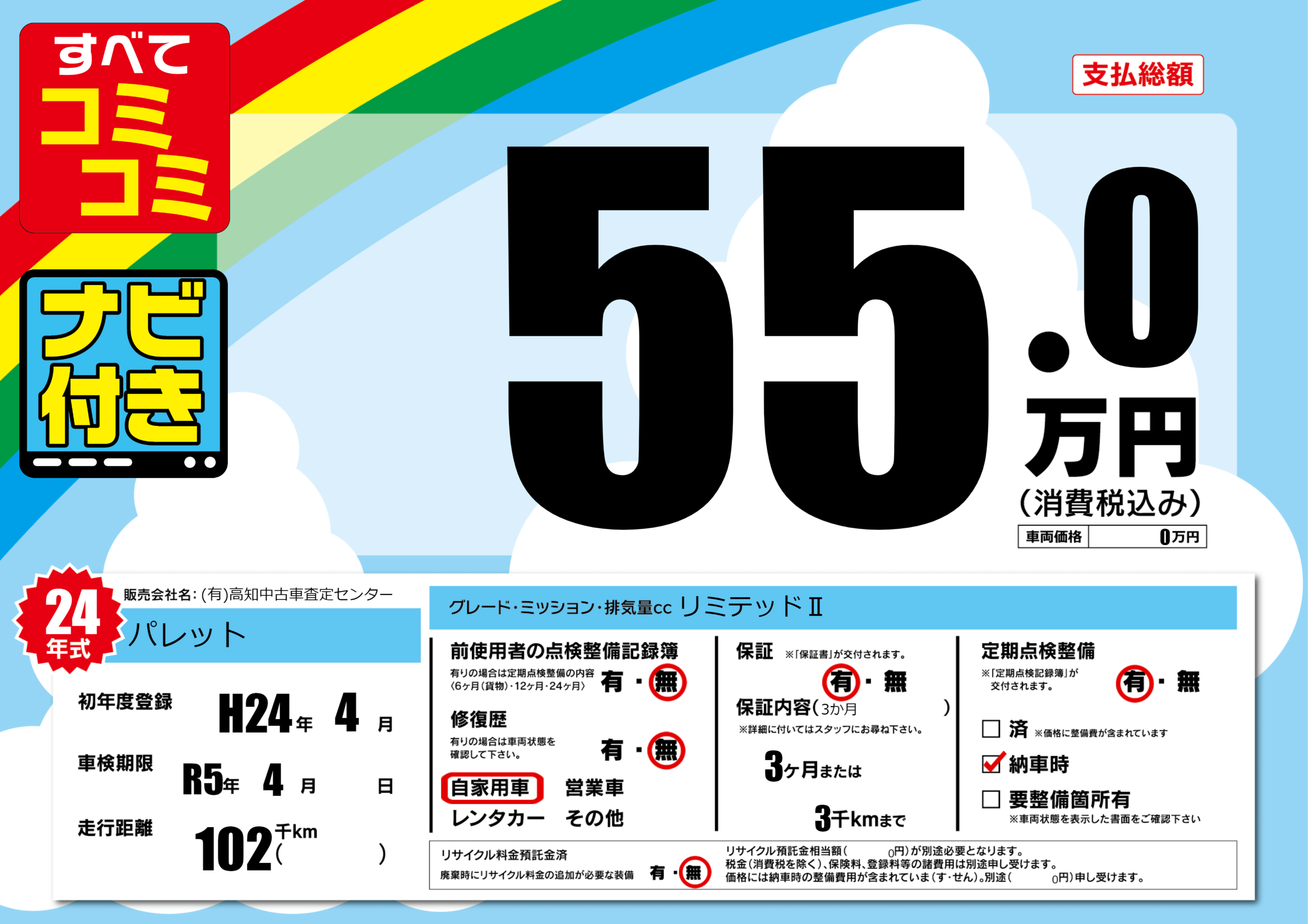 | 走行キロ | 10.2万km | 初年度登録 | H24年4月 |