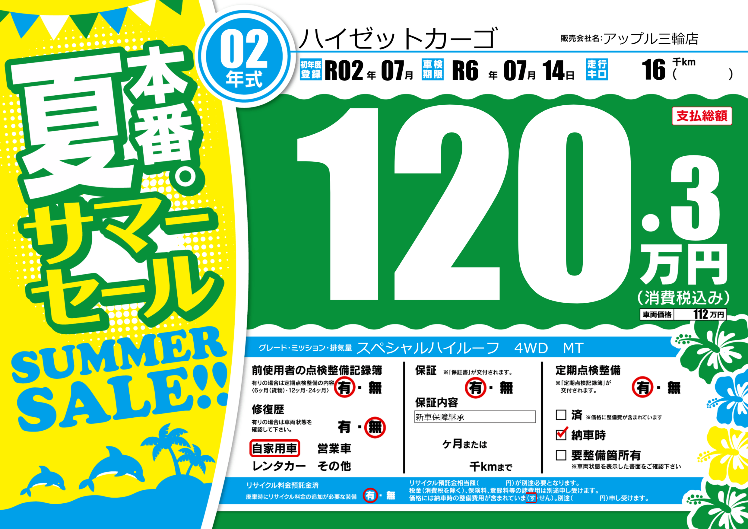 | 車検制限 | R6年 07月 14日 | ||