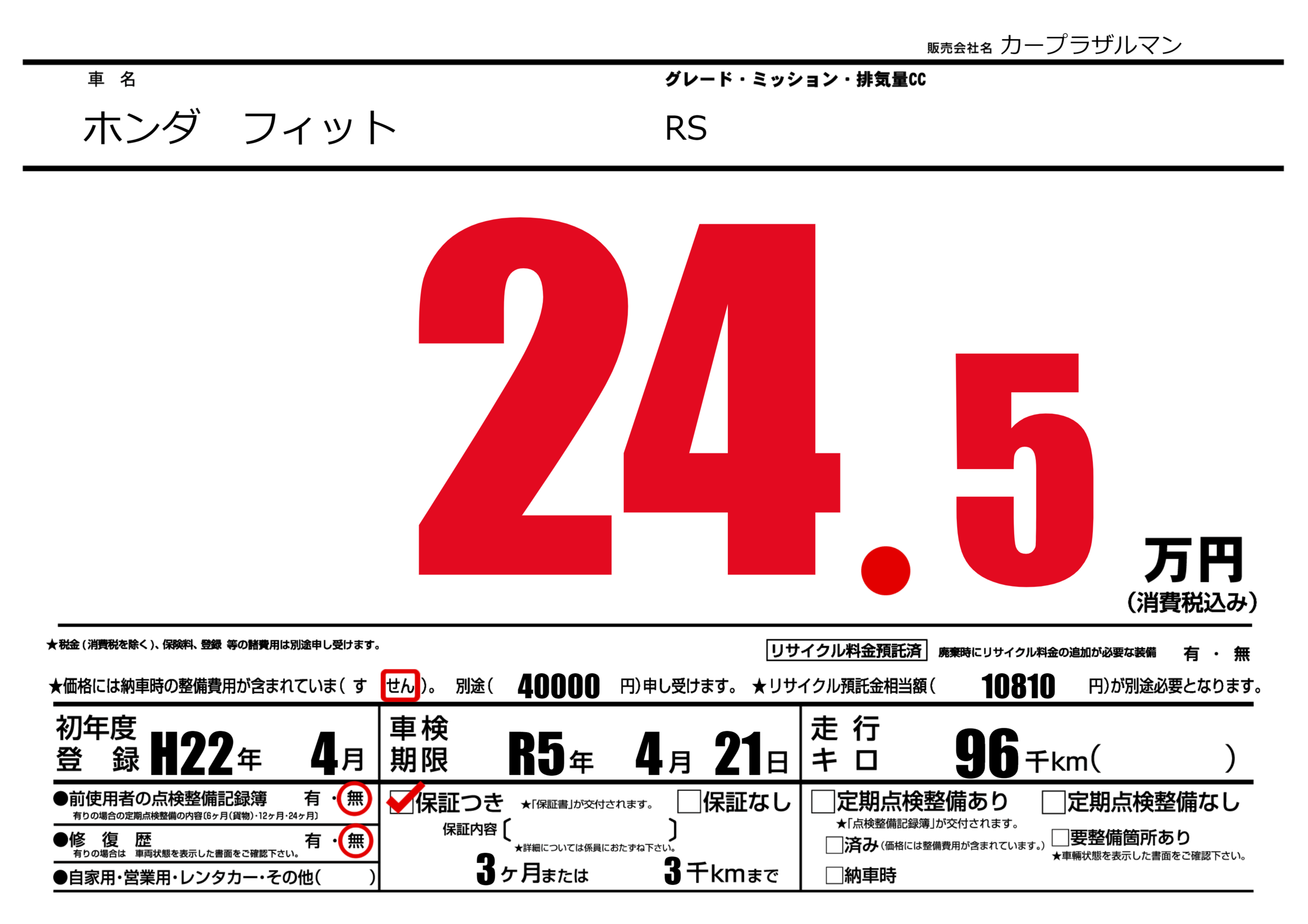 保証付き 保証内容(---) 3ヶ月または(3)千kmまで |