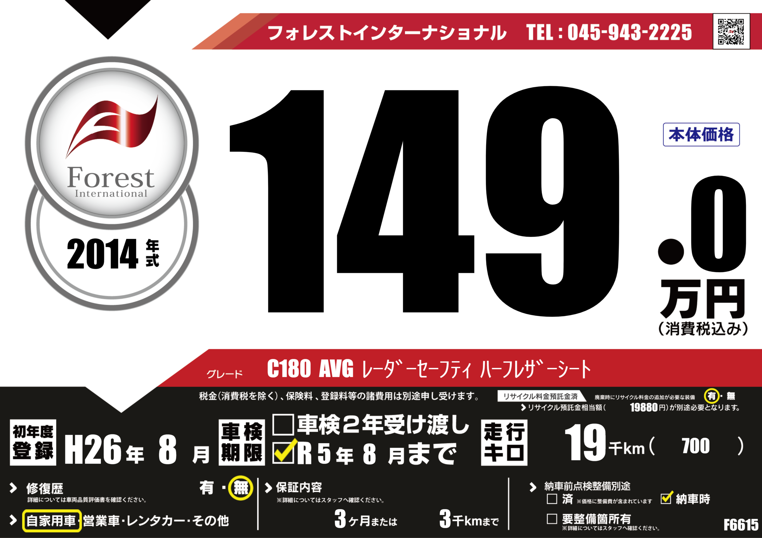 | 走行キロ | 1.9万km | 初年度登録 | H26年8月 |