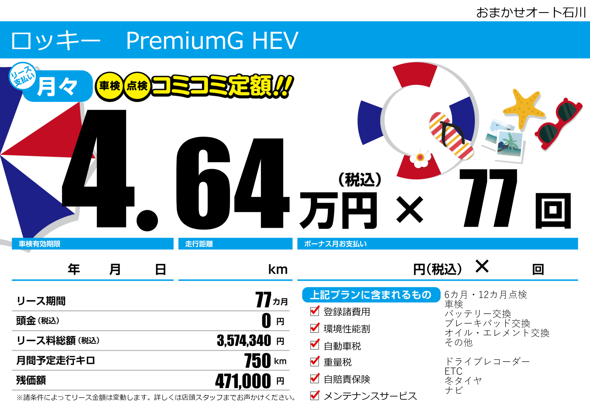 | 車名 | ロッキー PremiumG HEV | グレード ミッション 排気量 |