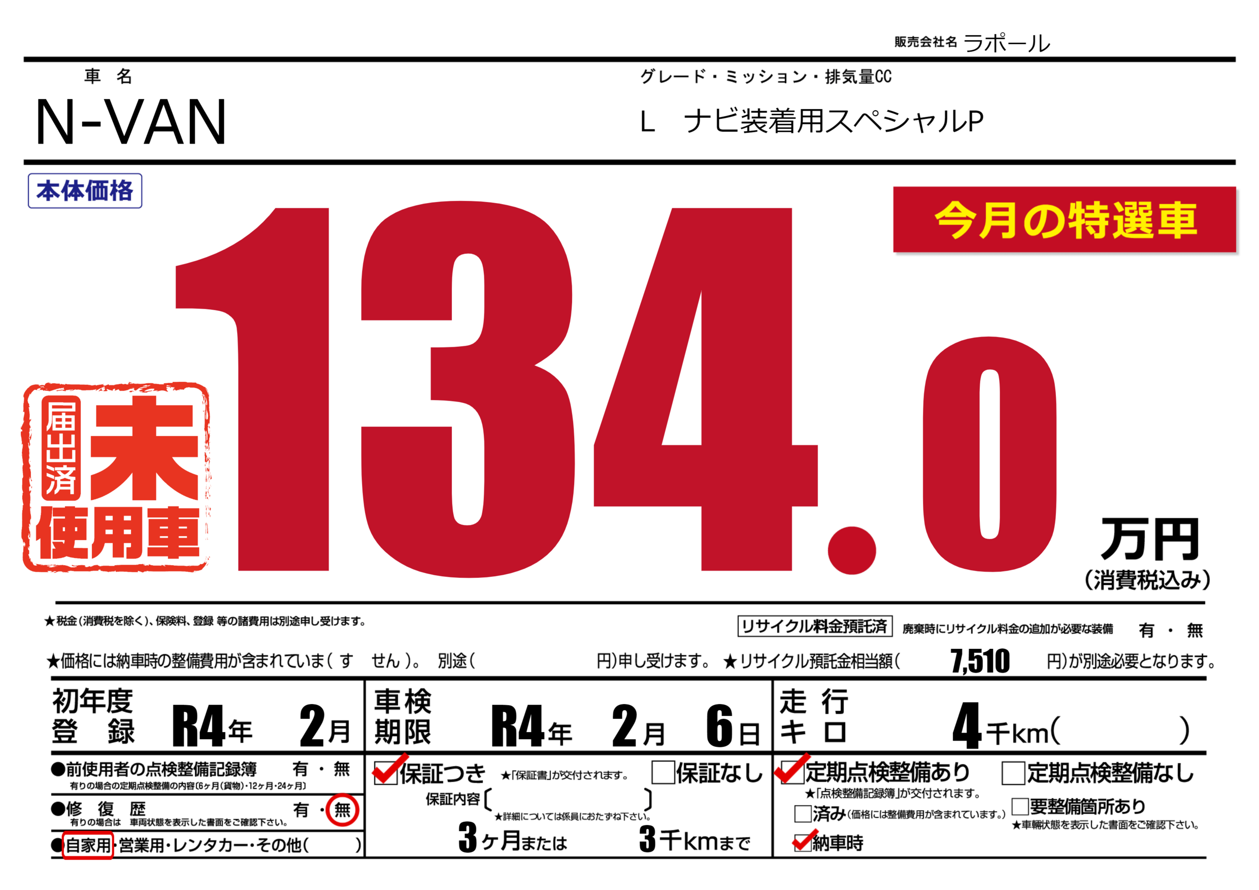 なし | 車検制限 | R4年2月6月 |