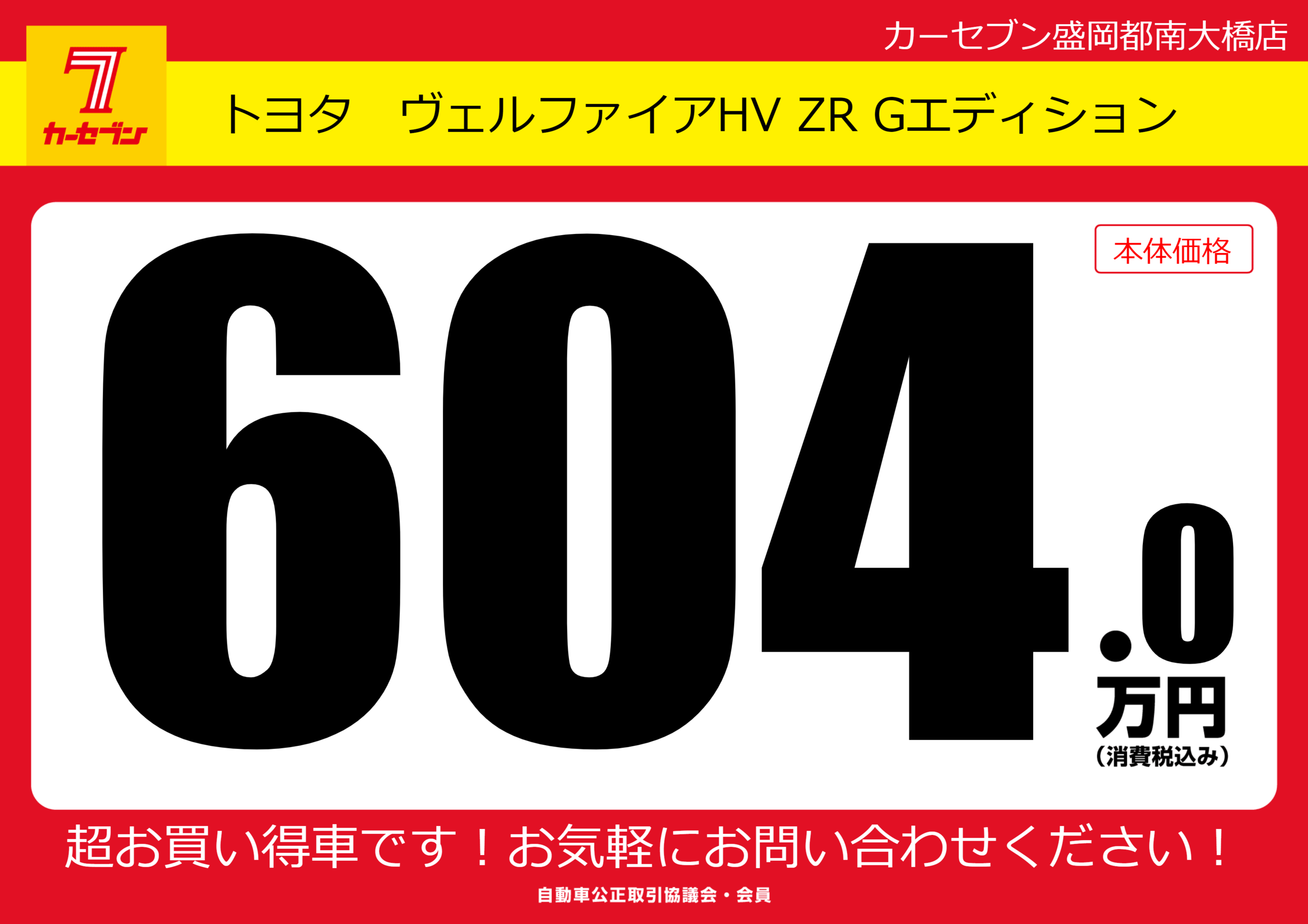 | 車名 | トヨタ ヴェルファイアHV ZR Gエディション | グレード ミッション 排気量 |
