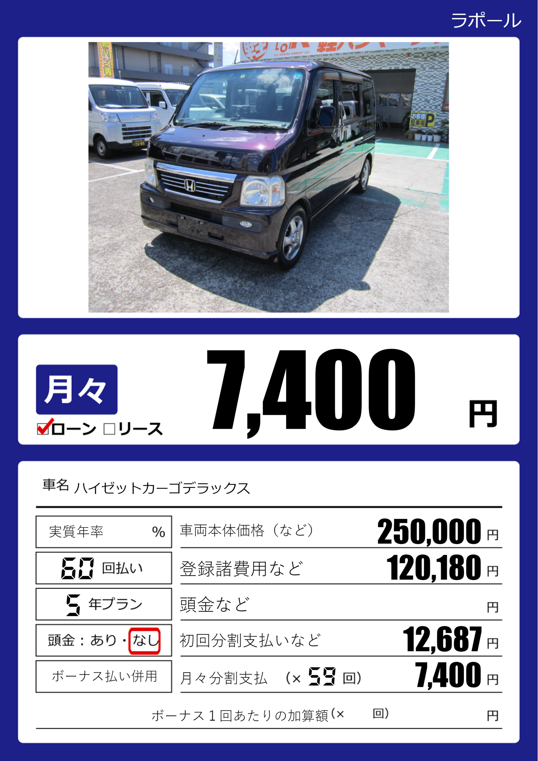 | 車名 | ハイゼットカーゴデラックス | グレード ミッション 排気量 |