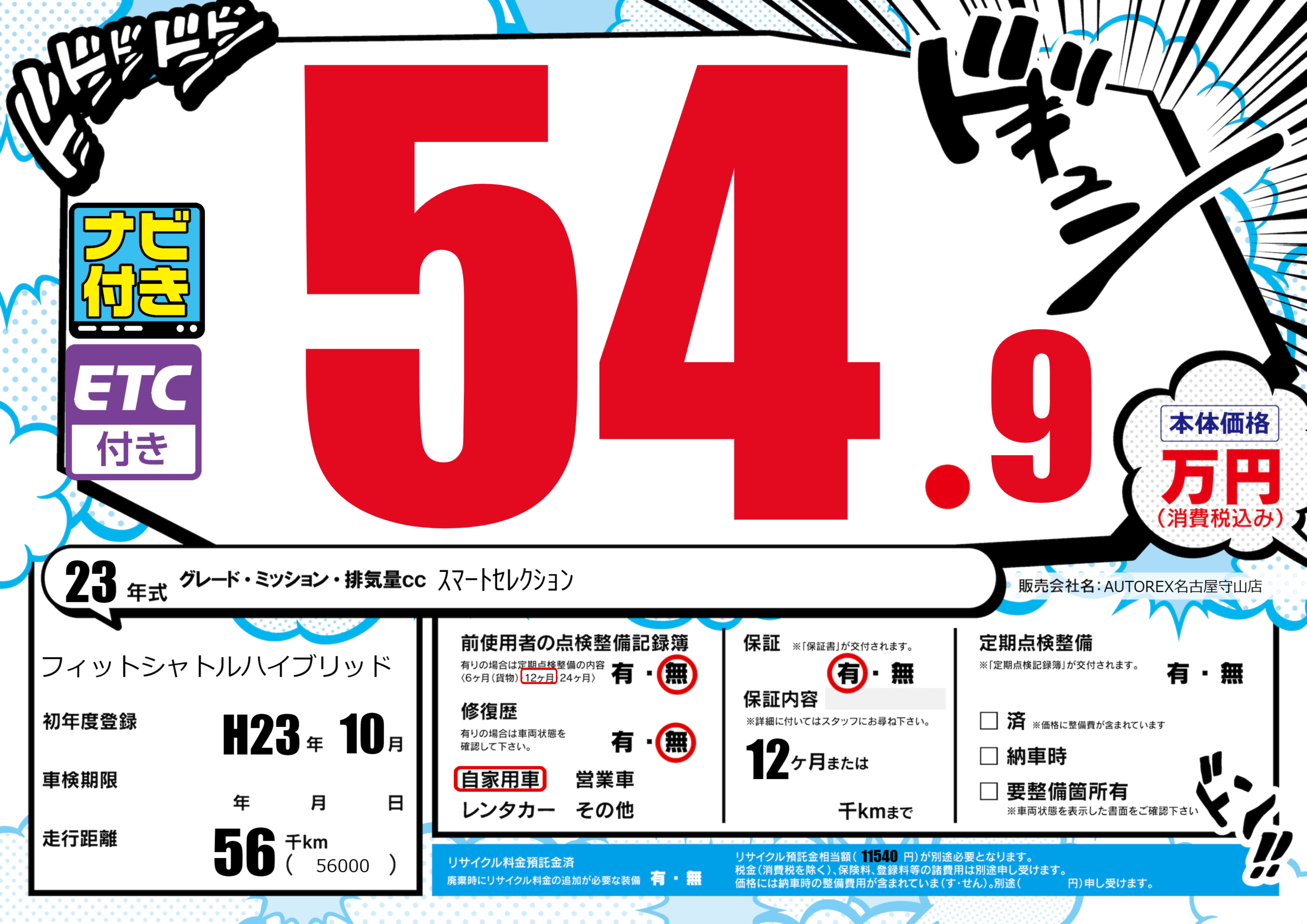 | 走行キロ | 5.6万km | 初年度登録 | H23年10月 |