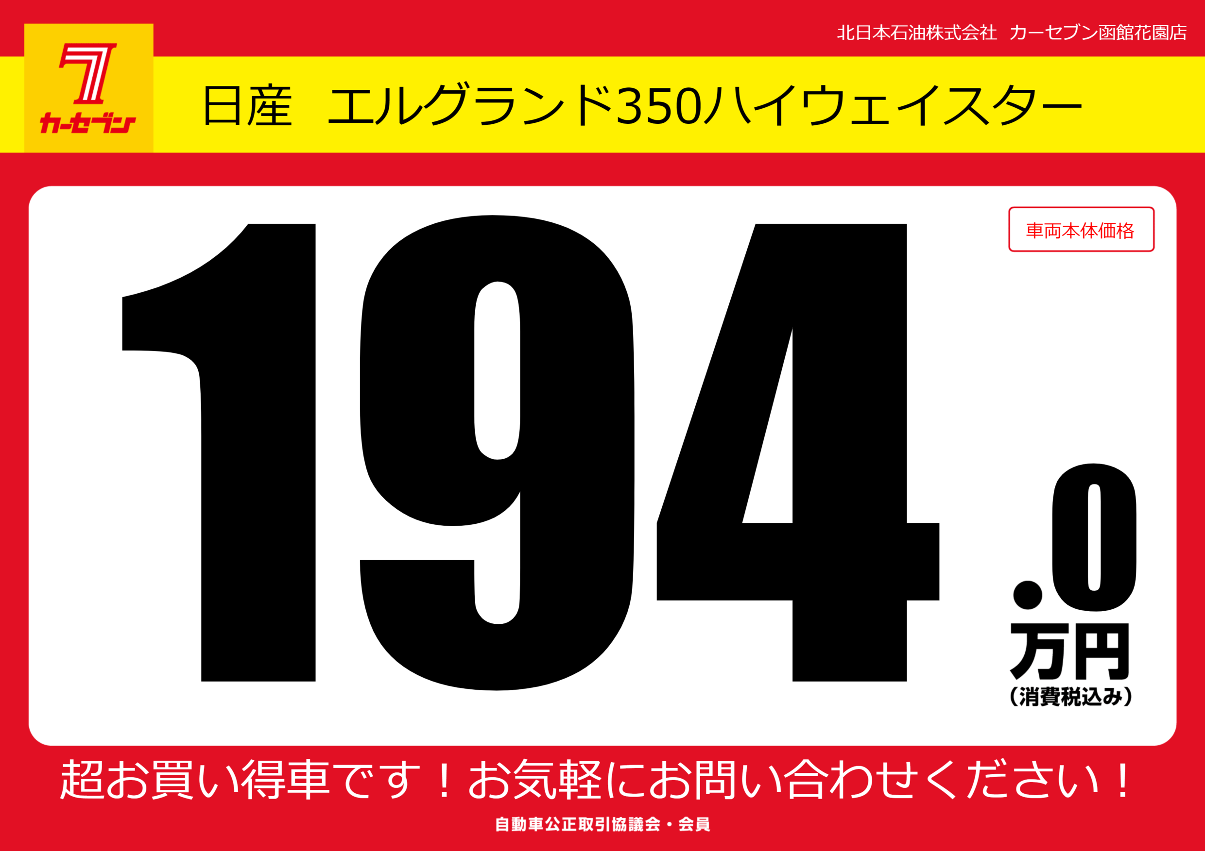 | 車名 | 日産 エルグランド350ハイウェイスター | グレード ミッション 排気量 |