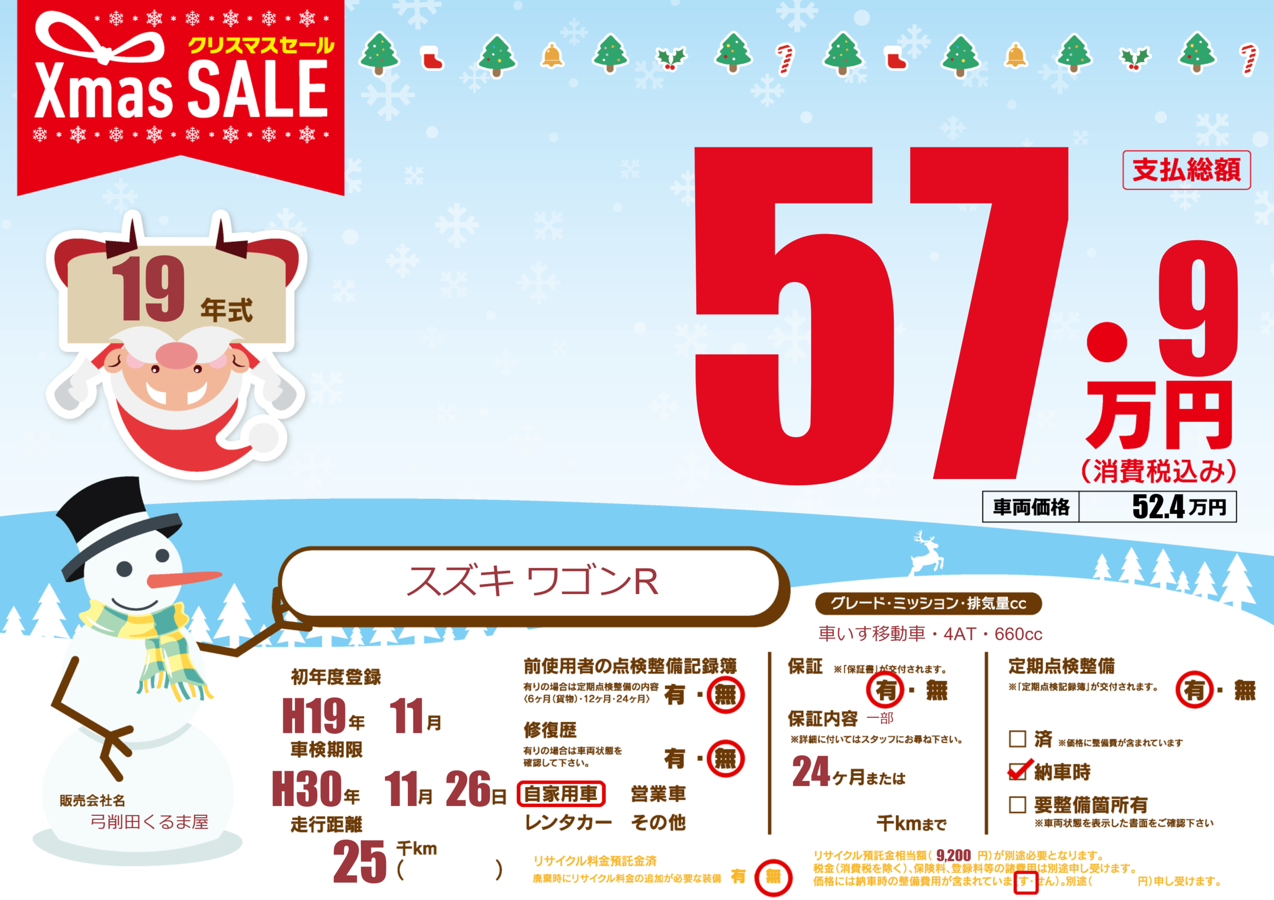 | 定期点検整備 | 定期点検整備あり 納車時あり | ||