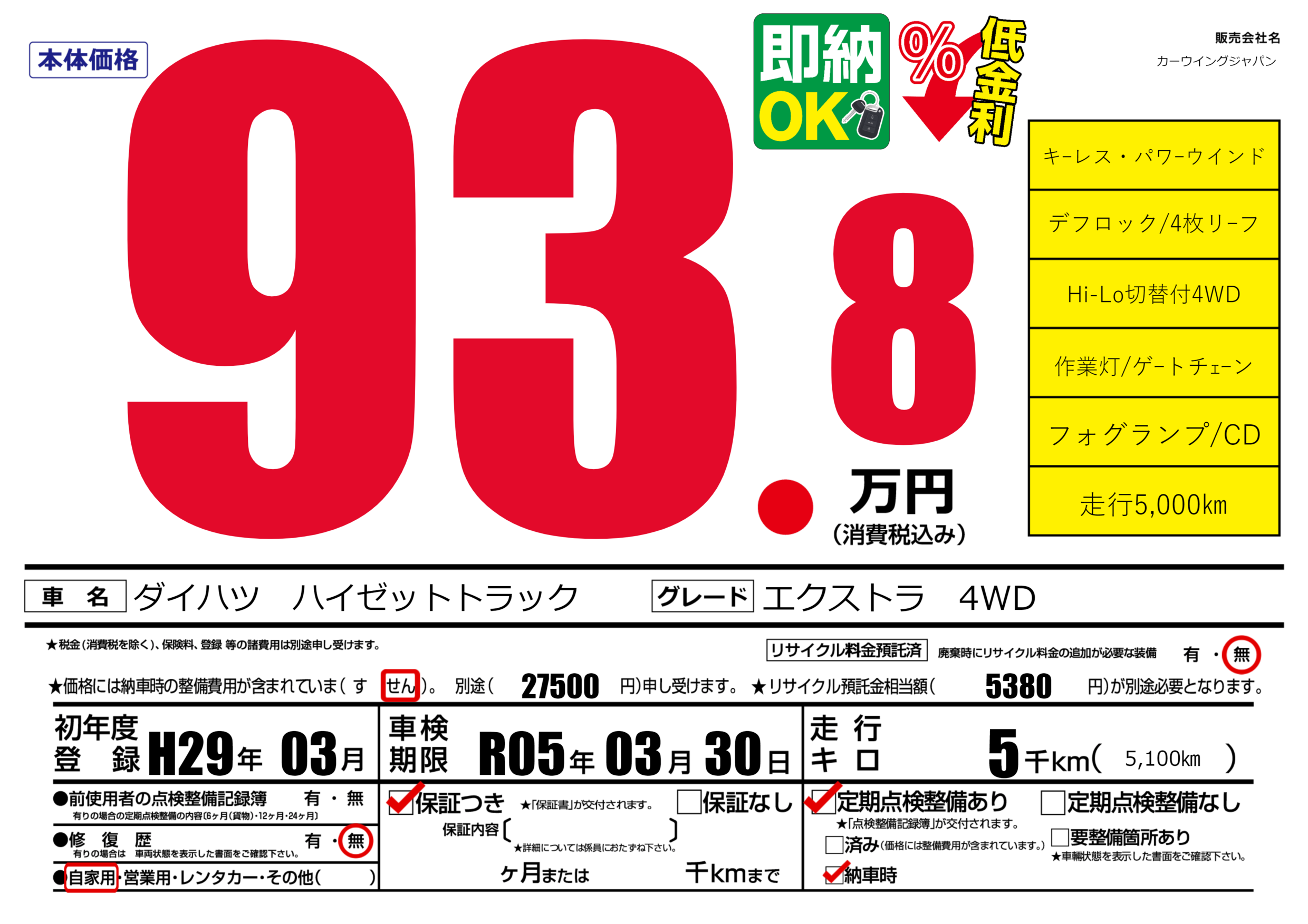 | 車検制限 | R05年 03月 30日 | ||