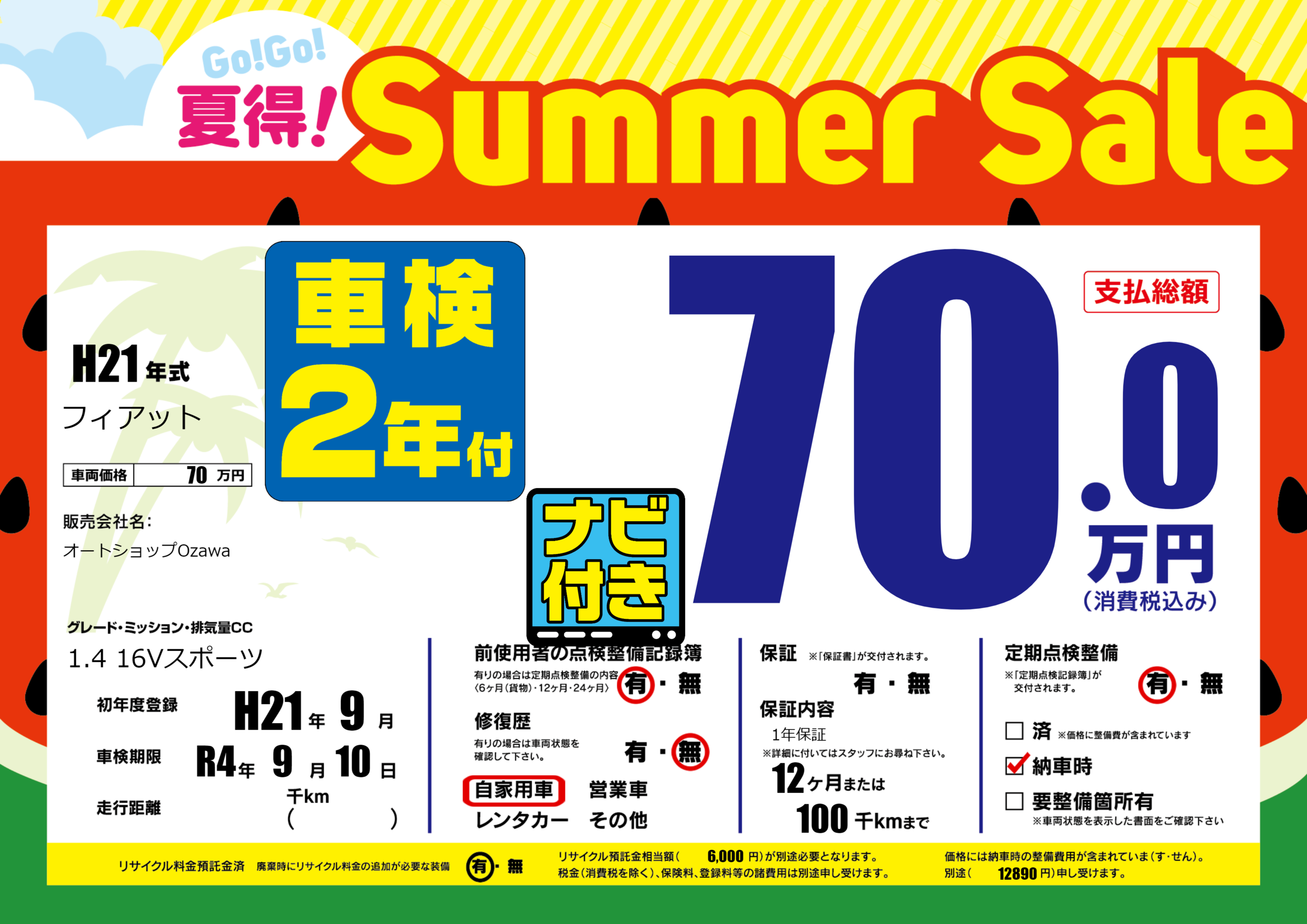 | 車名 | フィアット | グレード ミッション 排気量 |