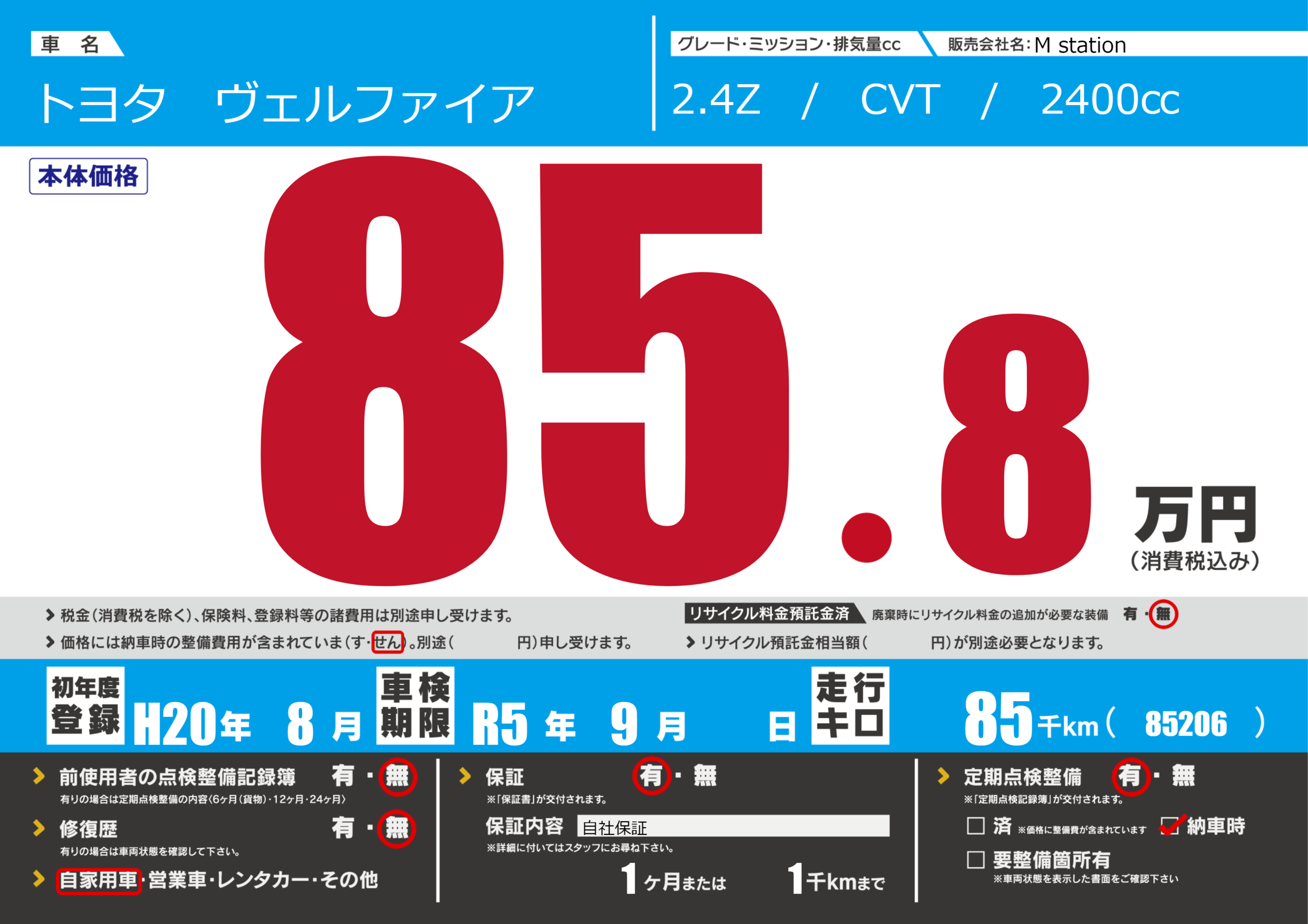なし | 車検制限 | R5年9月---月 |