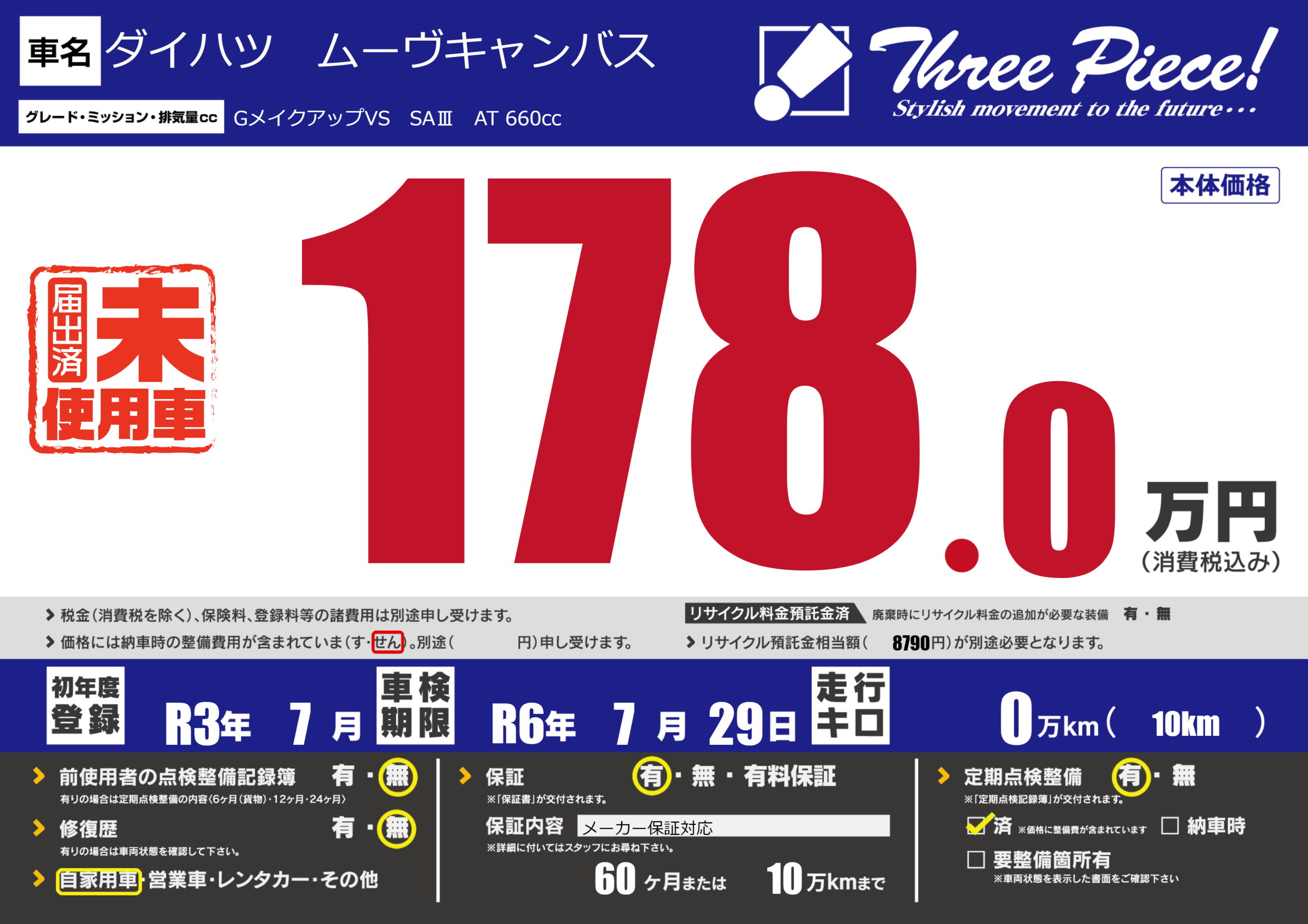 | 定期点検整備 | 定期点検整備あり 定期点検整備済み | ||