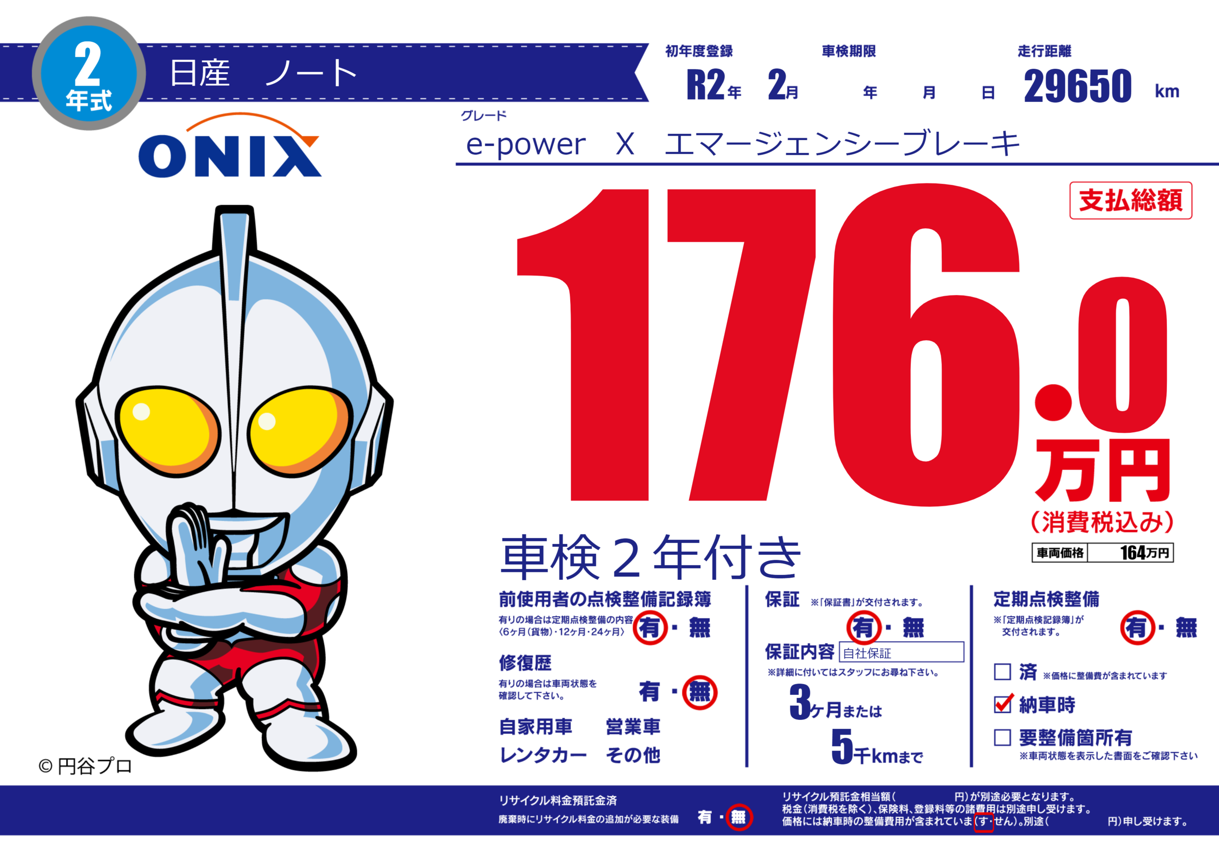 | 定期点検整備 | 定期点検整備あり 納車時あり | ||