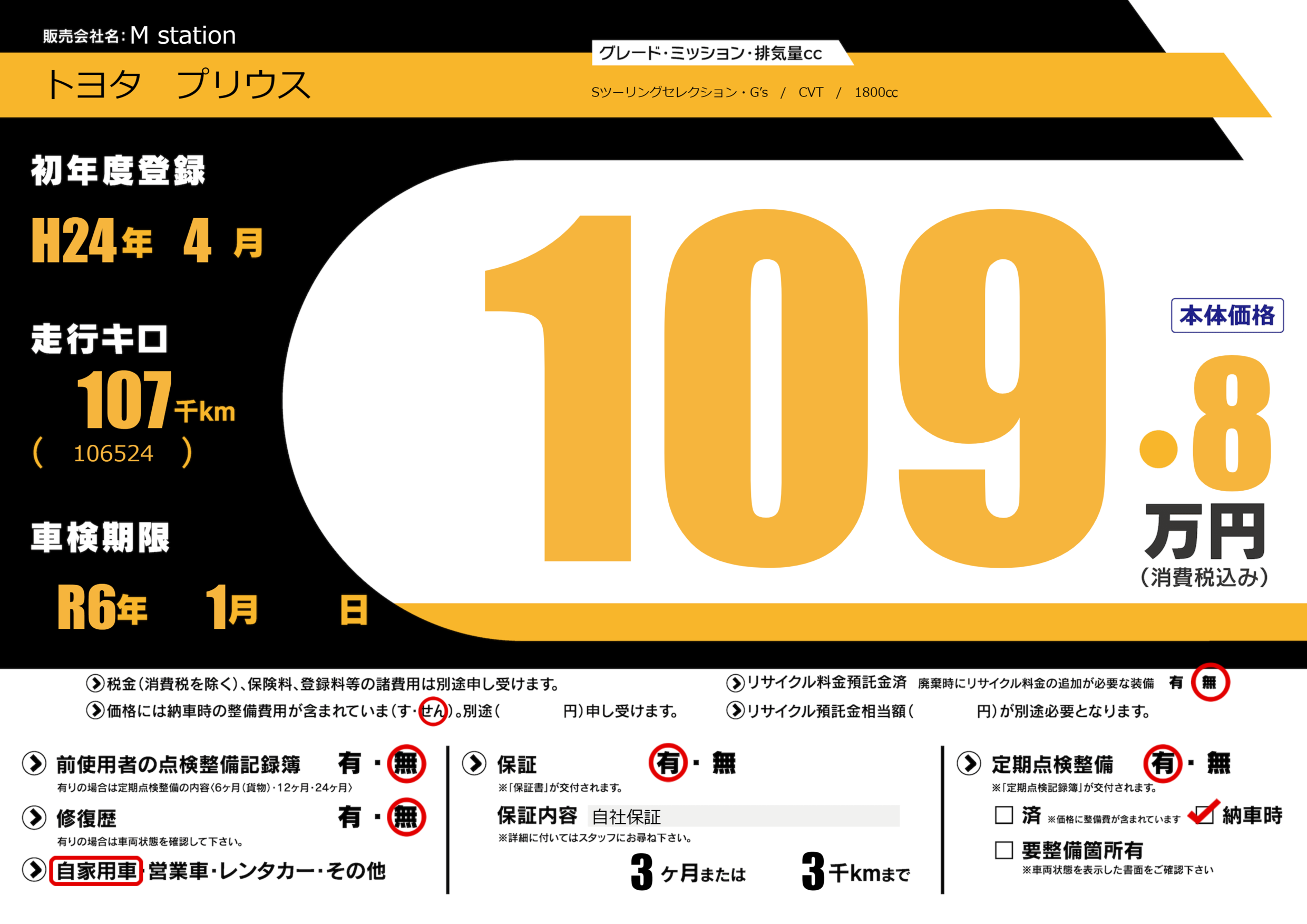 なし | 車検制限 | R6年1月---月 |