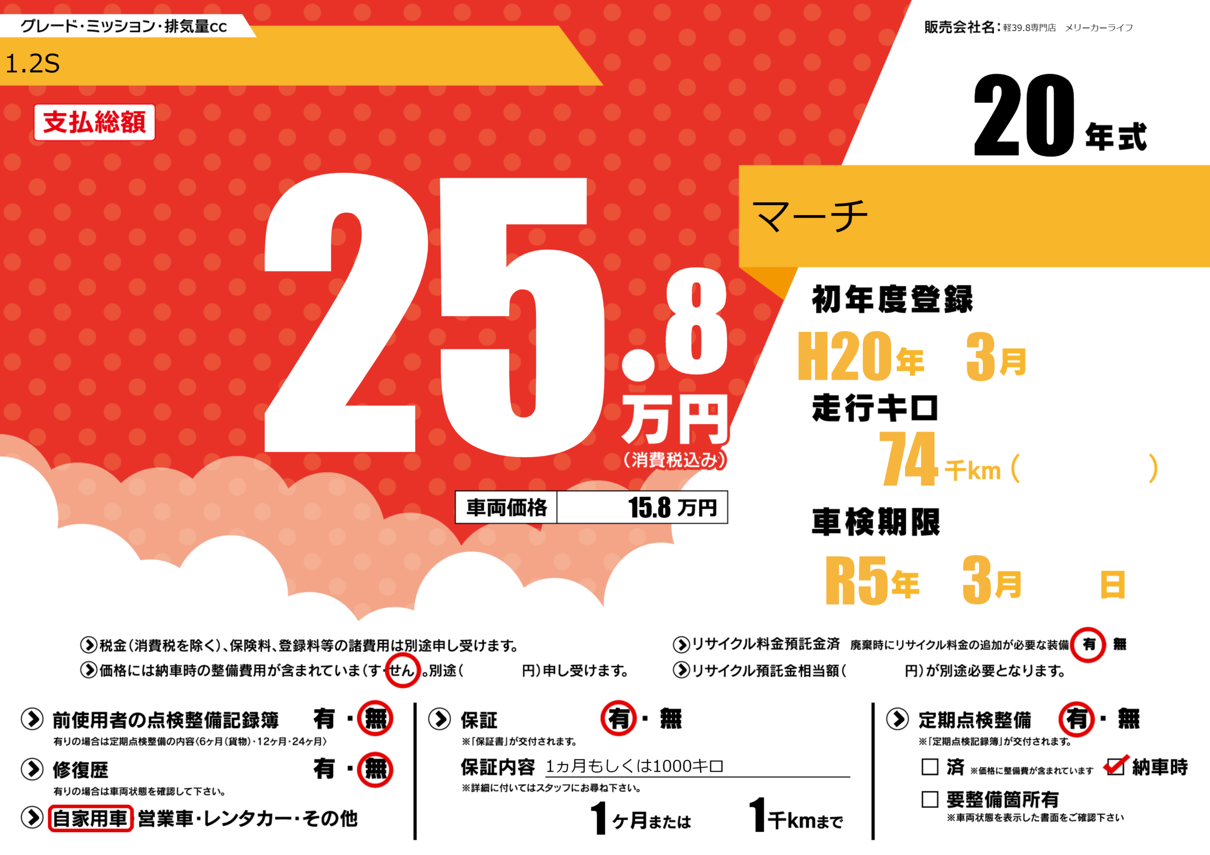 | 車名 | マーチ | グレード ミッション 排気量 |